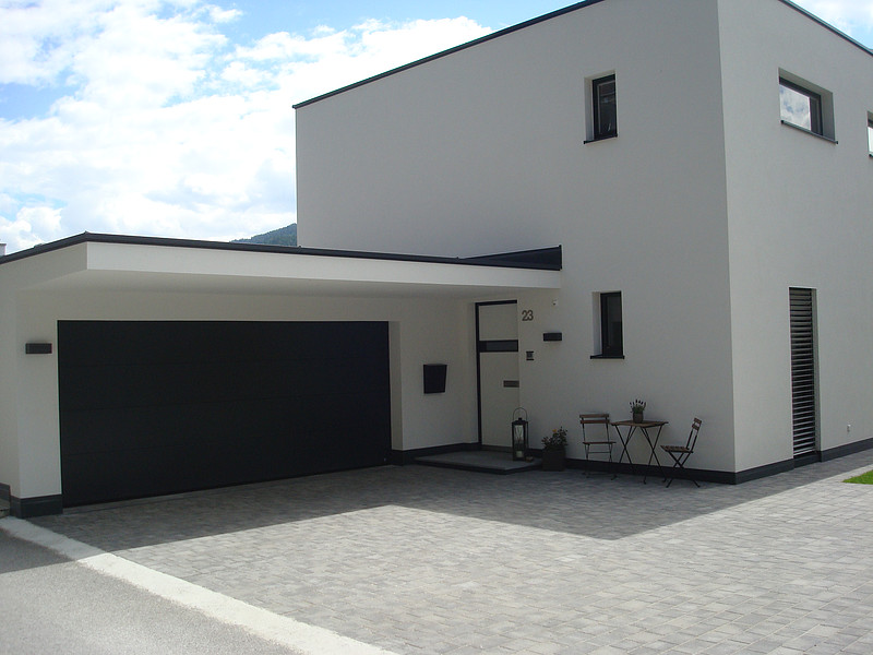 Einfamilienhaus nicht unterkellert, Massivbauweise mit zusätzlich 16cm EPS VWS, Fenster INTERNORM 3 fach Verglasung, Beheizung mittels Luft-Wasser Wärmepumpe STIEBEL ELTRON 304 Trend, FBH im gesamten Wohnraum, Flachdach mit Gefällebeton als Umkehrdach, Bodenplatte mit 12 cm XPS von AUSTROTHERM gedämmt, Bodenaufbau EG und OG 25 cm.