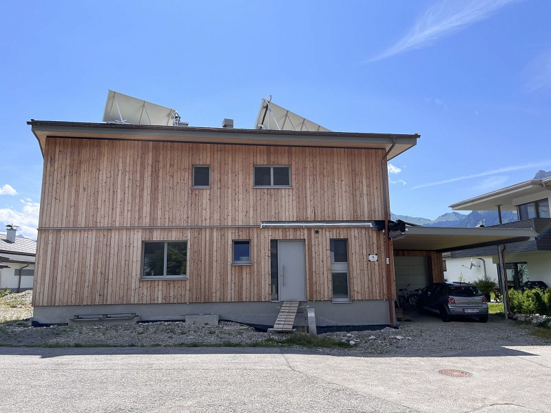 Beim Projekt "EFH Maier" handelt es sich um ein Einfamilienhaus für eine vierköpfige Familie. Gewünscht war eine ökologische Bauweise und ein nachhaltiges Energiekonzept. Bei unserem Haus handelt sich um ein leimfreies Massivholzhaus und wir verwendeten wo immer möglich ökologische Baustoffe. Das Haus ist als "Sonnenhaus" konzipiert mit einer solaren Deckung von mehr als 70%. Zudem wurde die ungünstige Form des Grundstücks in der Planung bestmöglich genutzt. Durch die Raumanordnung (alle Wohnräume im Süden) und die dazugehörigen Fensterflächen wird ein Maximum an direkter Solarnutzung erreicht. Der Energieertrag wird in verbauter Masse gespeichert. Um eine Überhitzung zu vermeiden wurde der Balkon so angepasst, dass im Sommer die Sonnenstrahlung nicht direkt auf die Fensterfläche scheint.