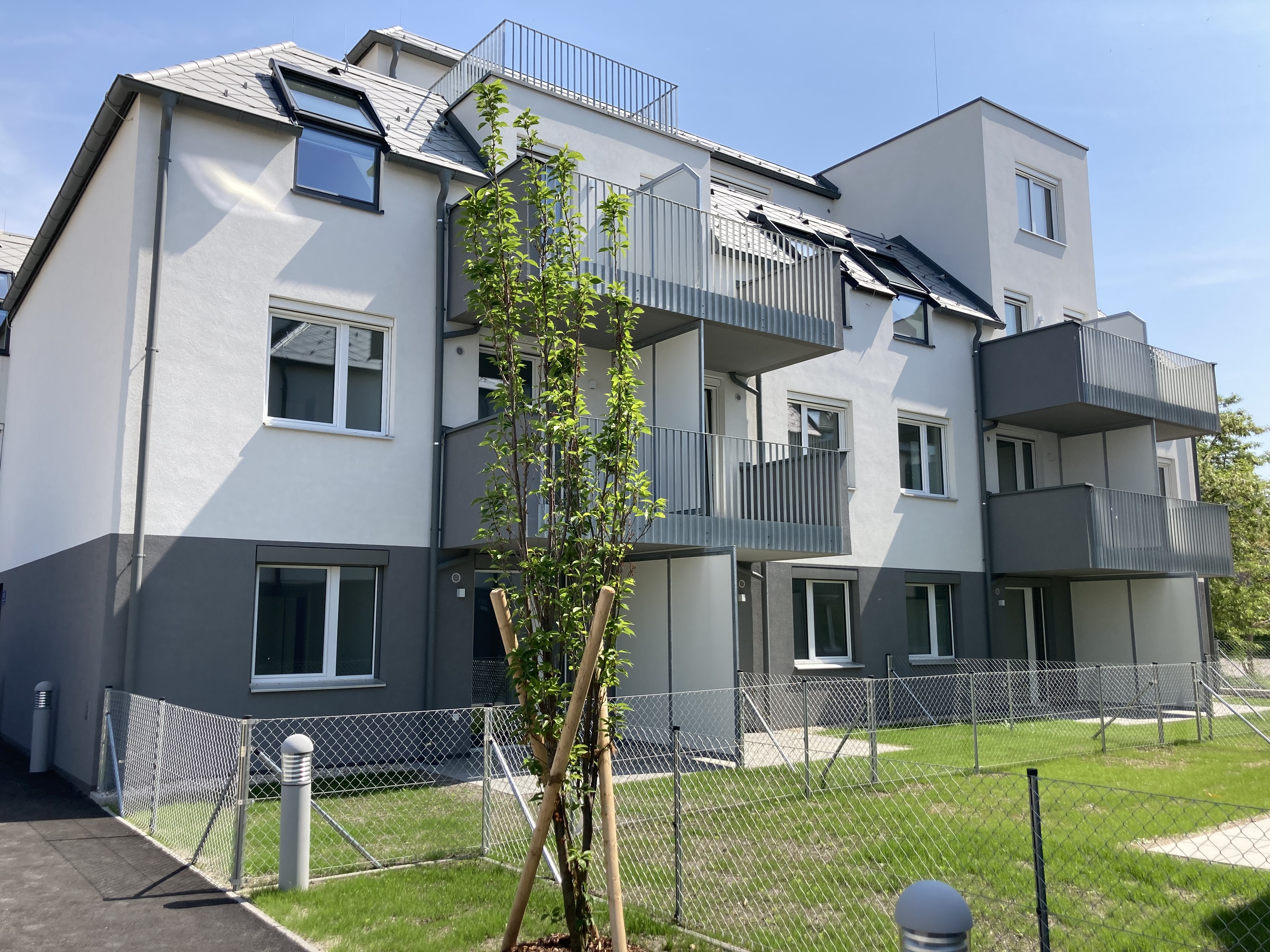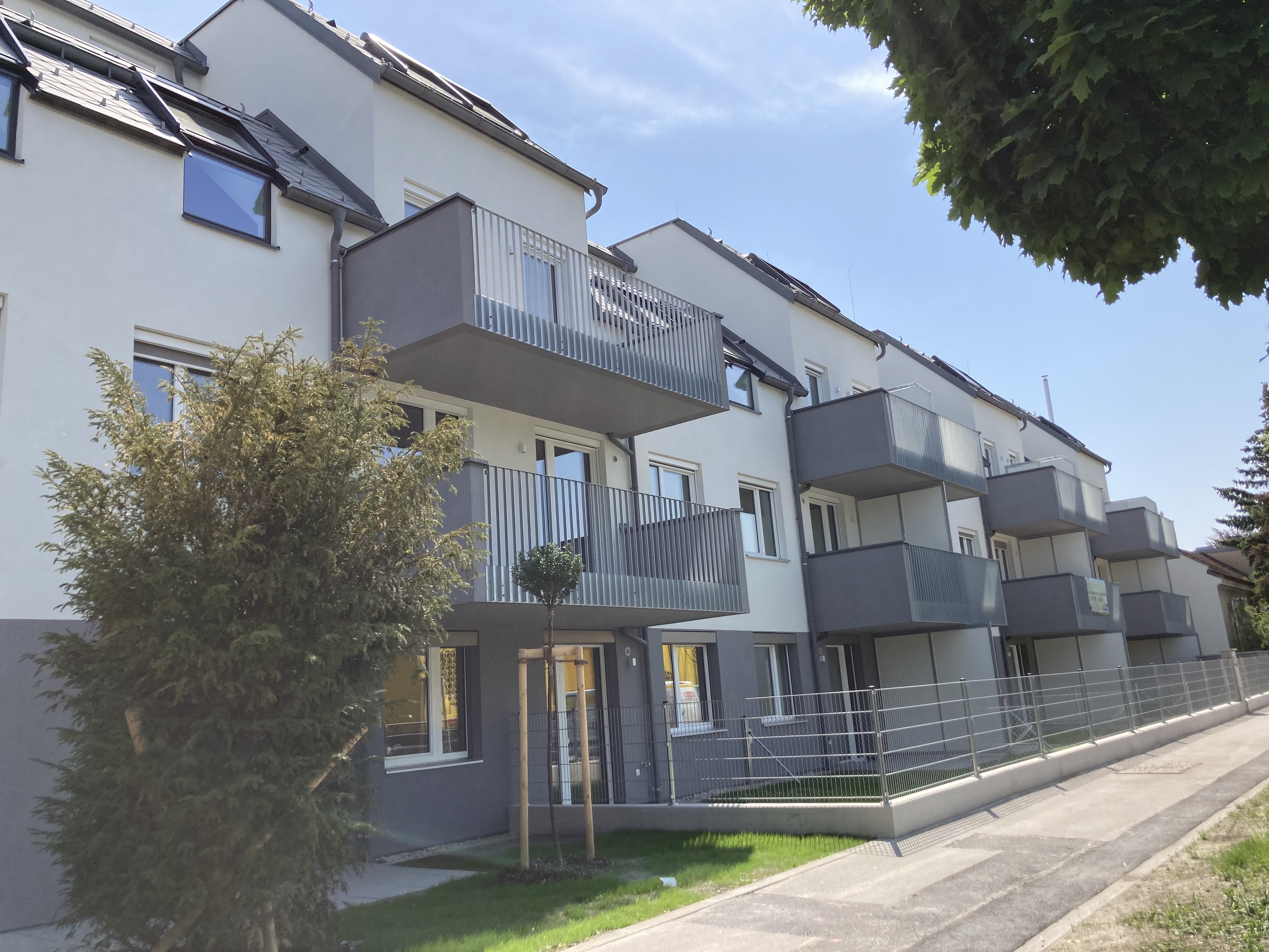 Jede Wohnung verfügt über einen individuellen Freibereich wie Balkon, Terrasse oder Eigengarten. Der Zugang sowie Zufahrt erfolgt über die Hirschstettner Straße an der westlichen Grundgrenze.