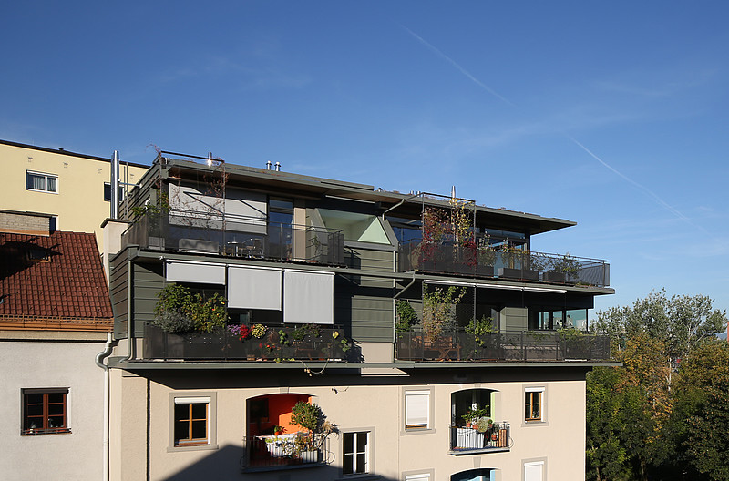 Das bestehende Dach eines Mehrfamilienhauses wurde abgenommen und in nur wenigen Tagen mit einem Holzbau ersetzt, der nun in einem Vollgeschoss und einem Dachgeschoss drei neue Wohneinheiten beherbergt.