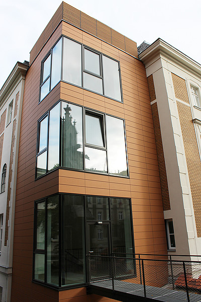 Ein inzwischen multifunktional genutztes Klostergebäude nahe des Wiener Westbahnhofes wurde hier mit besonderer Akribie denkmalgerecht saniert. Durch die Ergänzung mit innenliegenden, passivhaustauglichen Holzfenstern konnten die äußeren Flügel der Wiener Kastenfenster erhalten bleiben und erfahren trotzdem eine wesentliche thermische Verbesserung: Mit dem dazwischenliegenden Luftraum ergibt das einen beachtlichen U-Wert der Gesamtfensterkonstruktion von 0,9 W/m2K. Eine innenliegende Dämmung lässt die Fassade unangetastet und auch die bündig in die Dachhaut gesetzten Dachflächenfenster ordnen sich der Architektur des historischen Bestandes unter. Insgesamt wurde eine extrem deutliche Reduktion des Energieverbrauchs erzielt: Das Gebäude entspricht nahezu den Anforderungen eines Niedrigstenergiegebäudes im Neubau – und das, obwohl es unter Denkmalschutz steht.