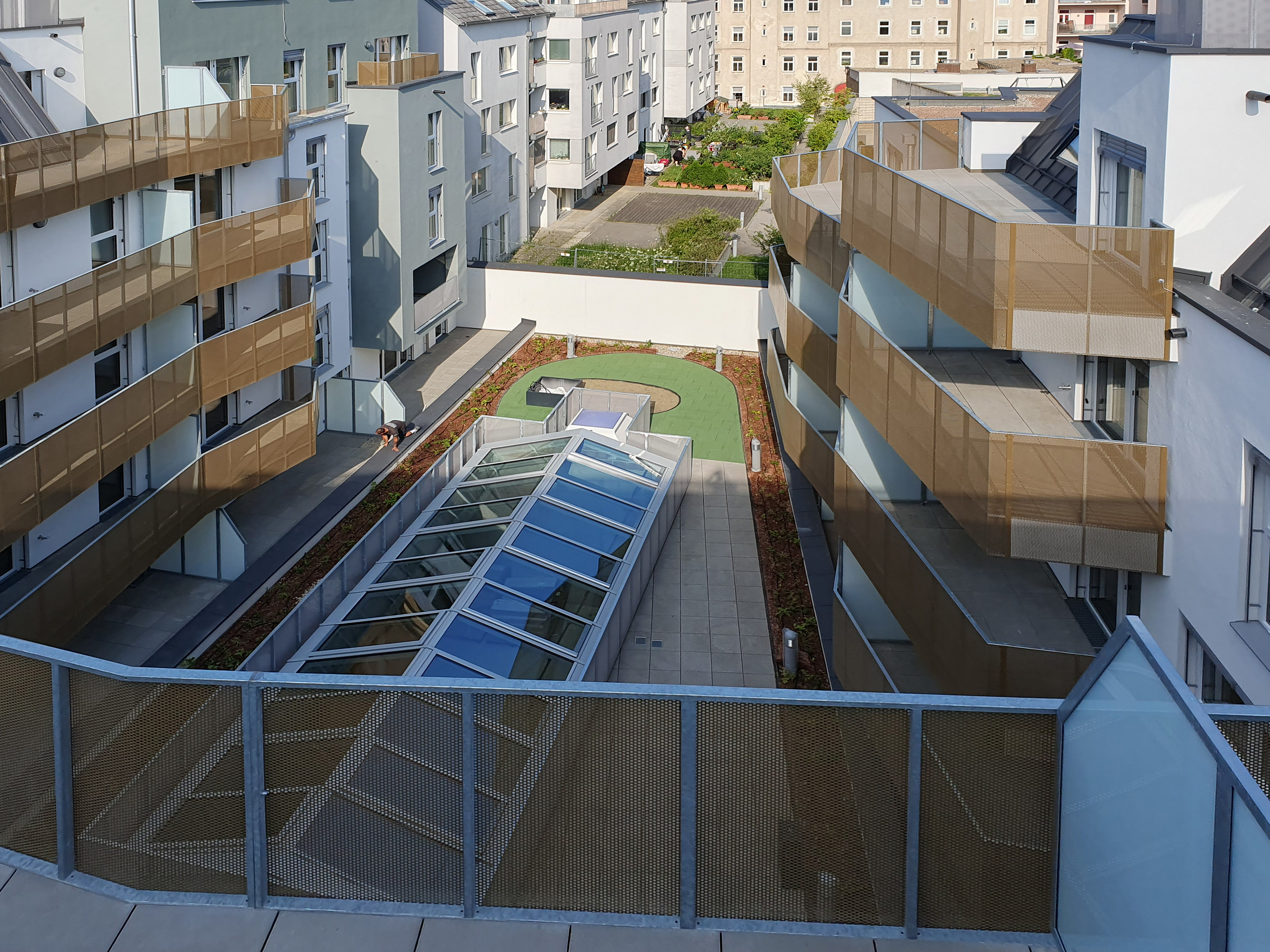 Im urbanen Teil des 14. Wiener Gemeindebezirks, mit allen Einrichtungen und Vorzügen einer lebendigen Stadt, wurde bis Sommer 2024 an Stelle eines aufgelassenen Industriestandorts ein auf Nachhaltigkeit ausgelegtes Wohn- und Geschäftshaus errichtet. Der Projektname PAUL&INA ist Programm und spiegelt die Qualitäten in den Bereichen Architektur, Ökologie und Soziale Nachhaltigkeit wider. Das Bauprogramm umfasst 2 Gewerbeflächen, 137 Wohnungen und 83 Garagenplätze zukünftig zum Teil auch mit E-Tankmöglichkeit. Für vielfältige Lebensmodelle eignet sich das variantenreiche Wohnungsangebot zu gut leistbaren Mieten, das vor allem durch die innovative Energieversorgung besticht. Dank Luftwärme + Sonnenstrom in Kombination mit Fernwärme ist eine klimafitte Heizung & Kühlung gewährleistet.