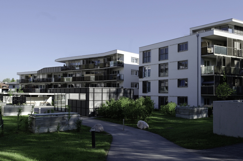 Errichtet wurden Zwei-, Drei-, u. Vierzimmer- Miet-, Mietkauf- und Eigentumswohnungen. Alle Wohnungen in den Obergeschoßen bieten mit großzügigen Balkonen bzw. Dachterrassen individuellen Erholungsraum. Die Eigentumswohnungen im Erdgeschoß verfügen über private Gärten. Jeder Wohnung ist ein PKW-Abstellplatz in der Tiefgarage zugeordnet. Zusätzlich stehen im Freien Parkplätze für Besucher zur Verfügung.