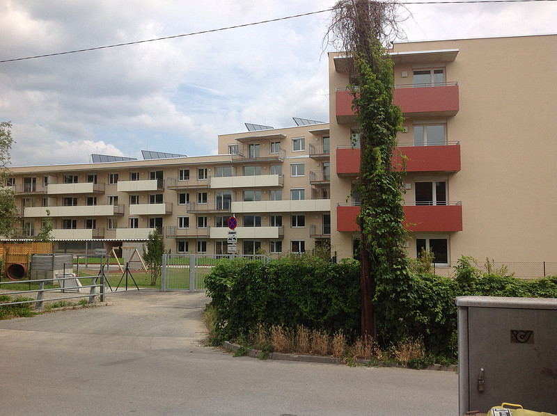 Das Wohngebäude integriert sich optimal in den bestehenden Stadtteil, der sehr gut an das öffentliche Verkehrsnetz angeschlossen ist. Ein Schwerpunkt liegt in der Raumbildung zur Floßlendstraße mit großen halb öffentlichen Zonen als Übergang zum frequentierten Straßenraum. Das Gebäude wurde in Passivhausqualität errichtet, die Wärmeversorgung erfolgt über Fernwärme. Eine thermische Solaranlage für die Aufbereitung des Warmwassers, die auch die Heizung unterstützt und eine ca. 37m² große Photovoltaikanlage, sowie eine kontrollierte Wohnraumlüftung mit Wärmerückgewinnung runden das energetische Gesamtsystem effizient ab.