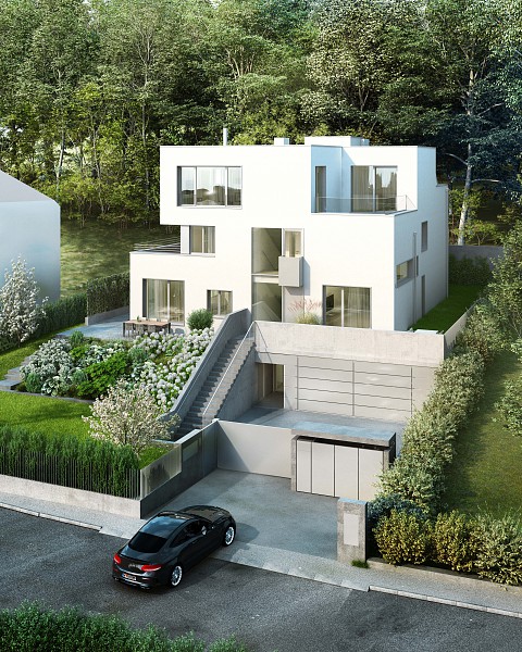 VILLA MoTo ist eine moderne Interpretation des Typus der eleganten Mietvillen in Wiens schönen Grünbezirken, für die hohe Wertigkeit der Ausführung in jeder Hinsicht typisch ist. Neben der Architektur und künstlerischen Interventionen bestimmen daher innovative technische Lösungen das Projekt, das mit Erdwärmenutzung, Photovoltaik, Bauteilaktivierung und wertvoller Ausstattung ein weitgehend energieautarkes und CO²-neutrales Konzept verfolgt. Mit 3 Wohnungen unterschiedlicher Größe, von denen eine auch als Künstlerinnenatelier dient, weist VILLA MoTo einen interessanten Nutzungsmix mit ungewöhnlichen Grundrissen auf. Der prägnanten Lage am Wienerwald angrenzend an die Tiergartenmauer entspricht auch die markante Architektur und das Grünraumkonzept des Hauses.