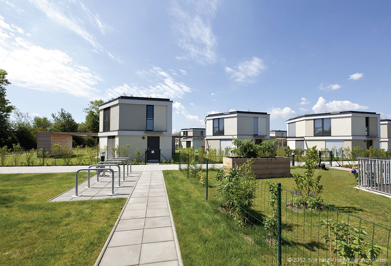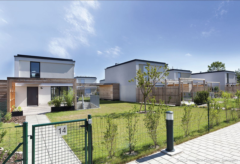 Die Anlage besteht aus 24 Kleingartenwohnhäusern, die sich neben der schönen Architektur durch die ökologischen Qualitäten u.a. Holzbau, Pelletsanlage, Niedriegenergiehaus, extensive Gründächer, Brunnen, schadstoffarme Innenausstattung auszeichnen.