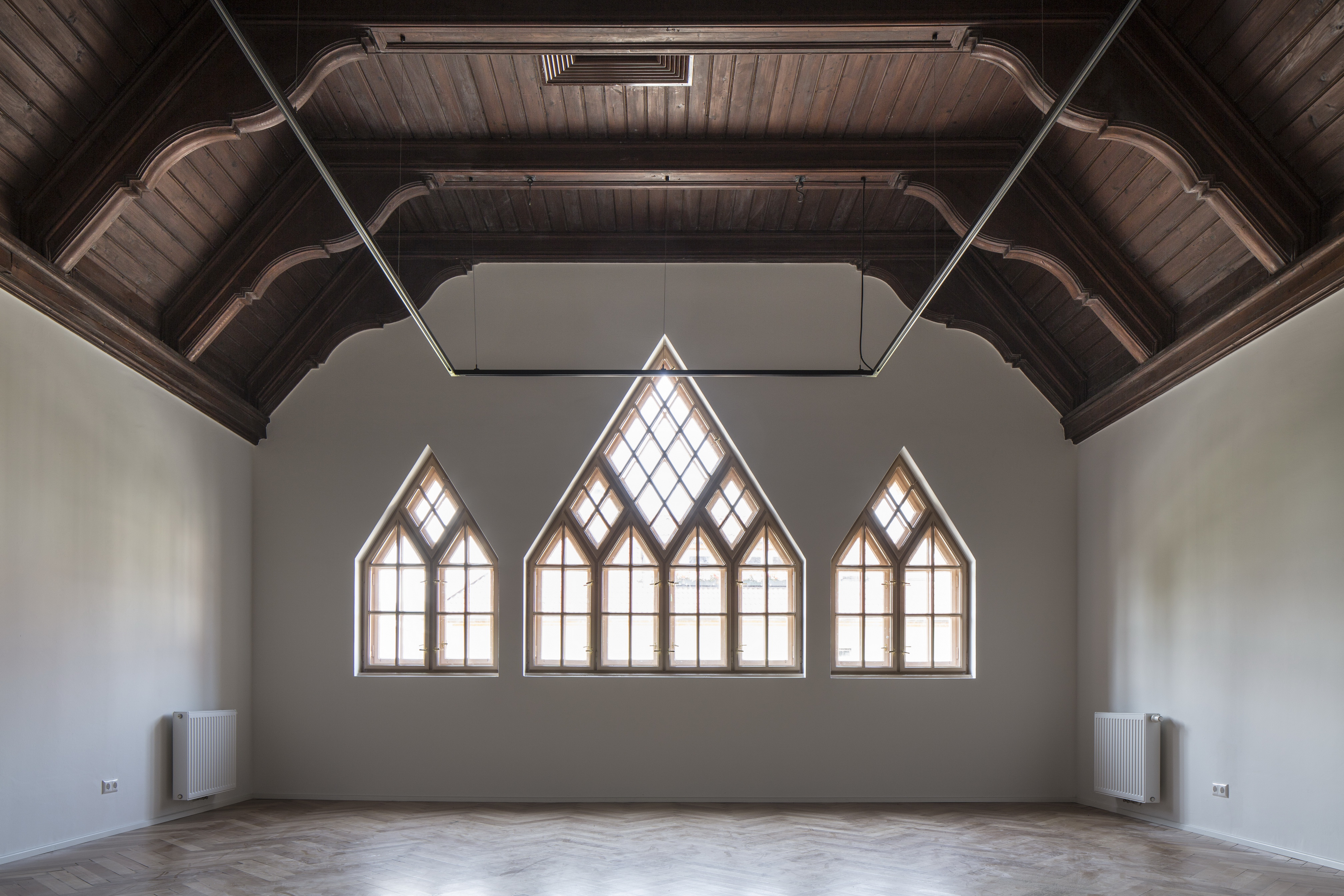 Das Gebäude zeichnet sich durch seine stark gegliederten Tore an der Straßenhauptfassade aus. Die große Dachfläche wird durch einen enormen Frontgiebel aufgelöst. Das Gebäude umfasst zwei Vollgeschosse, ein Dachgeschoss und eine Teilunterkellerung. Der Zugang erfolgt vom Franz-Baumgartner-Platz.