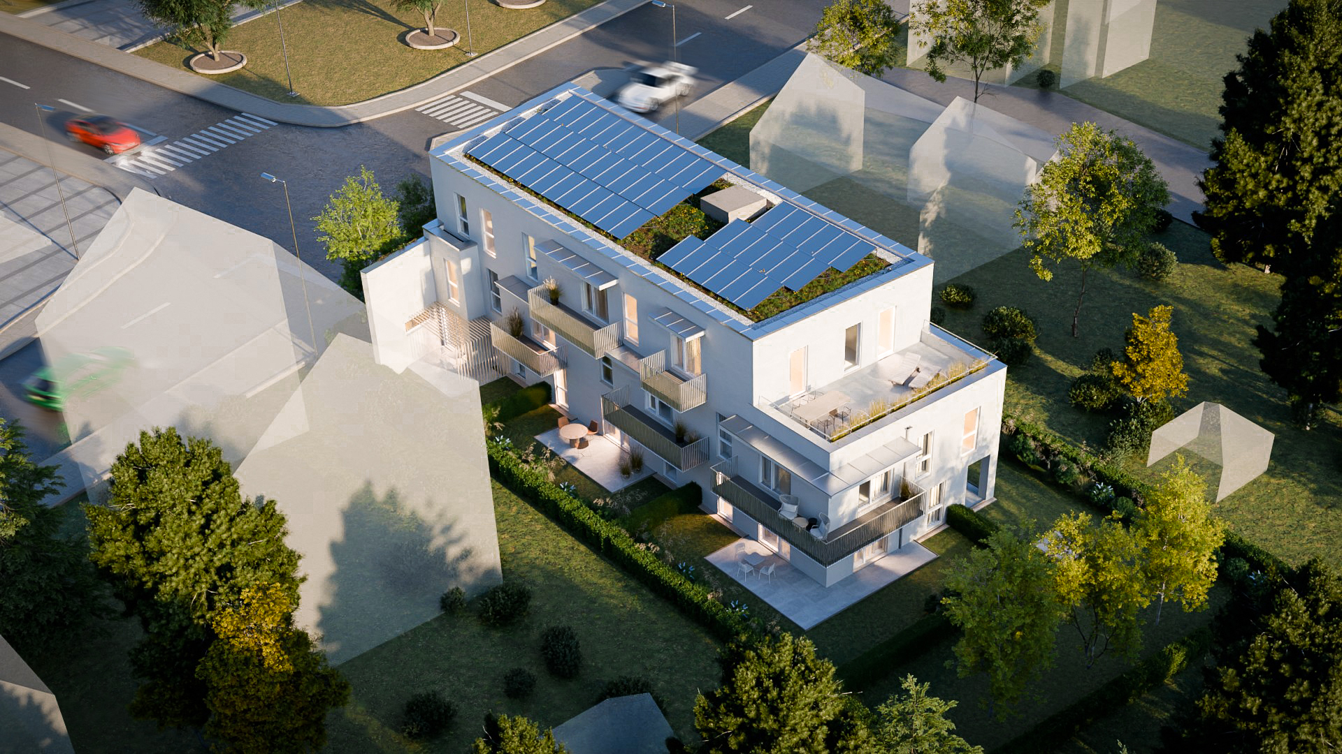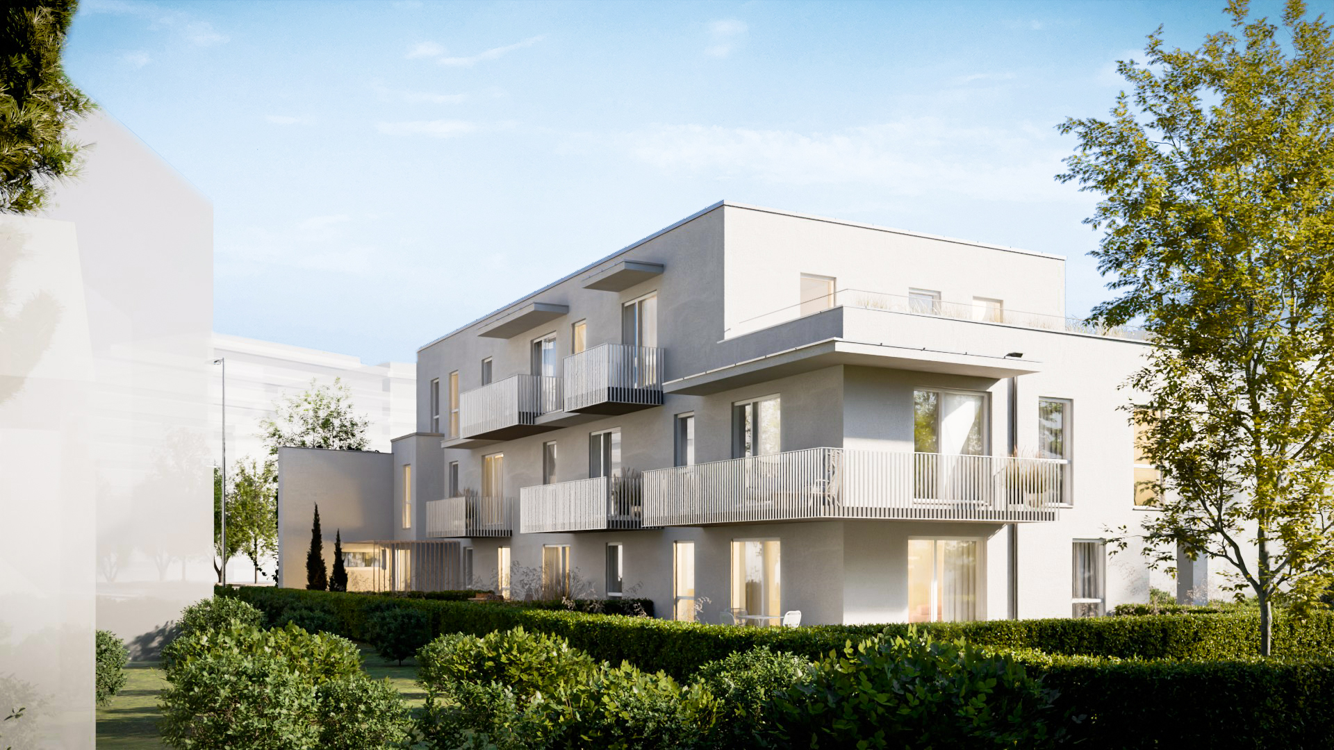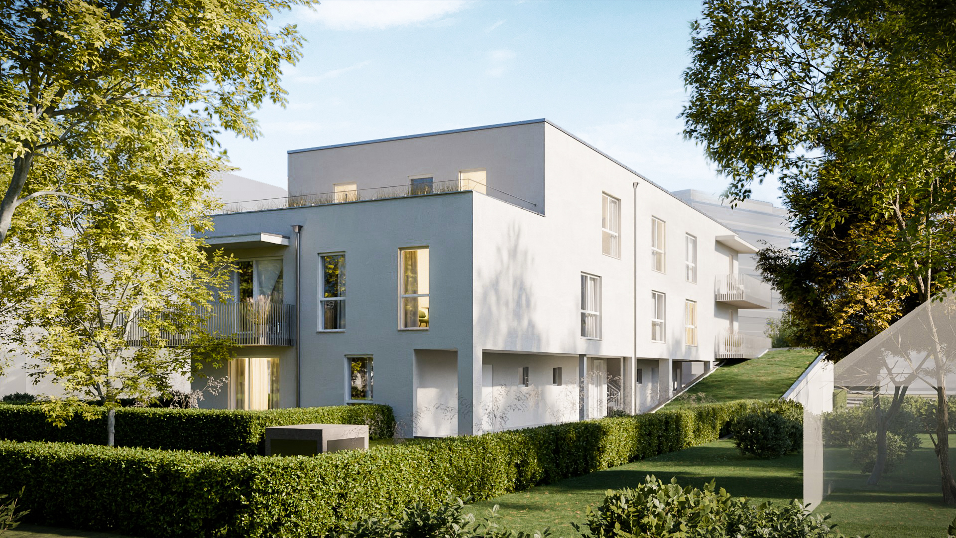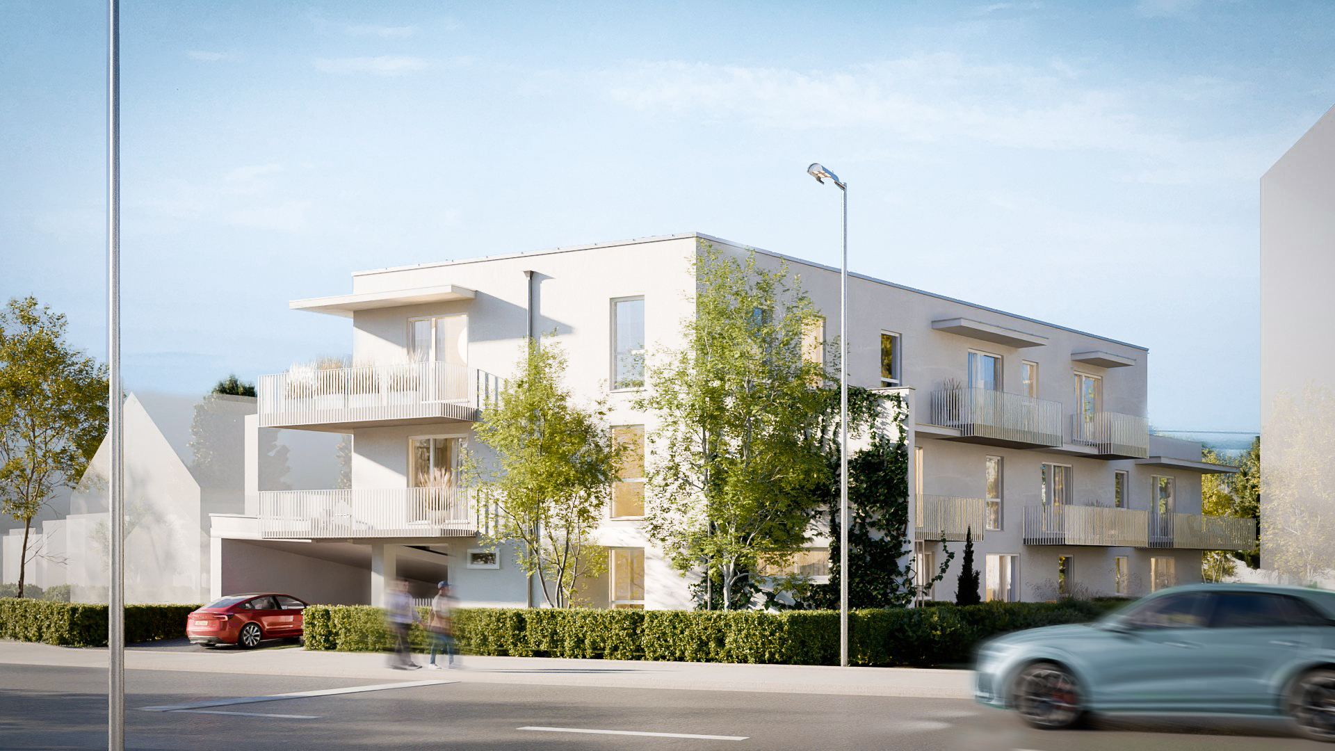 Anstelle eines bestehenden Einfamilienhauses Errichtung von 10 Wohneinheiten in einem dreigeschossigen Baukörper an einem Treppenhaus mit Personenaufzug. Tiefgarage für 7 PKW sowie 13 witterungsgeschützte Fahrradstellplätze. Sämtliche Wohnungen sind barrierefrei adaptierbar und verfügen über zugeordnete Terrassen oder Balkone, darüber hinaus über allgemein zugängliche Grünflächen und Kinderspielplatz.