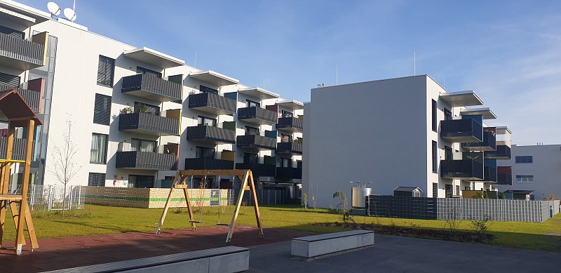 Errichtung einer mehrgeschossigen Wohnanlage mit mehreren Baukörpern (A,B,C,D) mit Gesamt 59 Wohneinheiten und einer zentralen Tiefgarage.