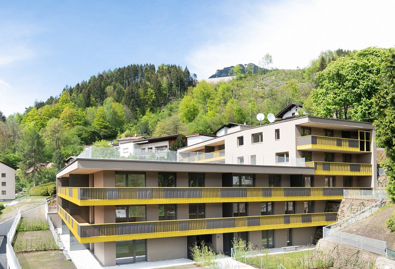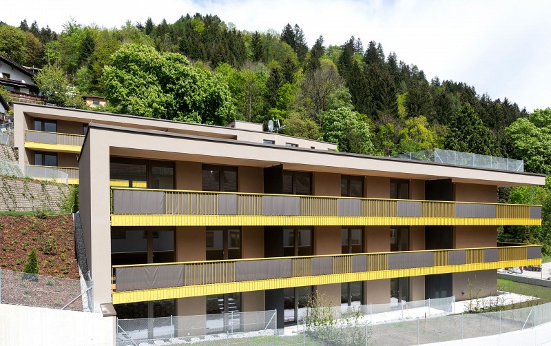 Neubau einer Wohnanlage in Passivhausbauweise mit 20 Eigentumswohnungen und 19 Tiefgaragenparkplätze und 8 Carport-Plätze. Der Baukörper wird U-förmig errichtet und gliedert sich aufgrund der Hanglage in ein Untergeschoss mit Tiefgarage, einem Erdgeschoss und 4 weiteren oberirdischen Geschossen.