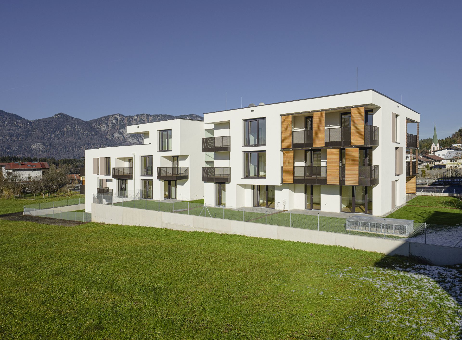 Entlang der leicht ansteigenden Rettenbachstraße am Glaurachbach wurde eine Wohnanlage mit 17 Wohneinheiten und einem Gemeinschaftsraum erbaut.