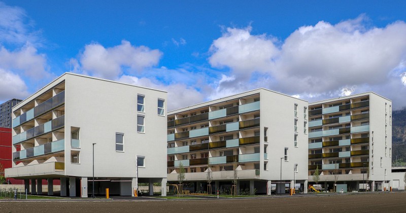 Das Grundstück Nr. 180/1 liegt südlich der Steinbockallee, östlich der 2013 (RU22) ebenfalls von der NHT errichteten Wohnanlage. Errichtet werden drei Wohnhäuser: südlich situiert Haus C (4-geschossig mit 16 Wohneinheiten, davon 8 Seniorenwohnungen), mittig situiert Haus B (5-geschossig mit 20 Wohnungen) und nördlich Haus A (7-geschossig mit 28 Wohneinheiten).