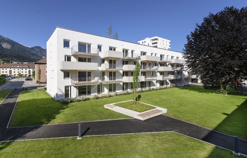 Neubau einer Wohnanlage in Passivhausbauweise mit 88 Mietwohnungen, einem Gemeinschaftsraum, einem Geschäftslokal und 106 Tiefgaragenplätzen. Auf dem Flachdach des Gebäudes befinden sich Dachterrassen, die den Bewohnern Freiflächen und zugeordnete Flächen für urbanen Gartenbau zur Selbstbewirtschaftung bieten.