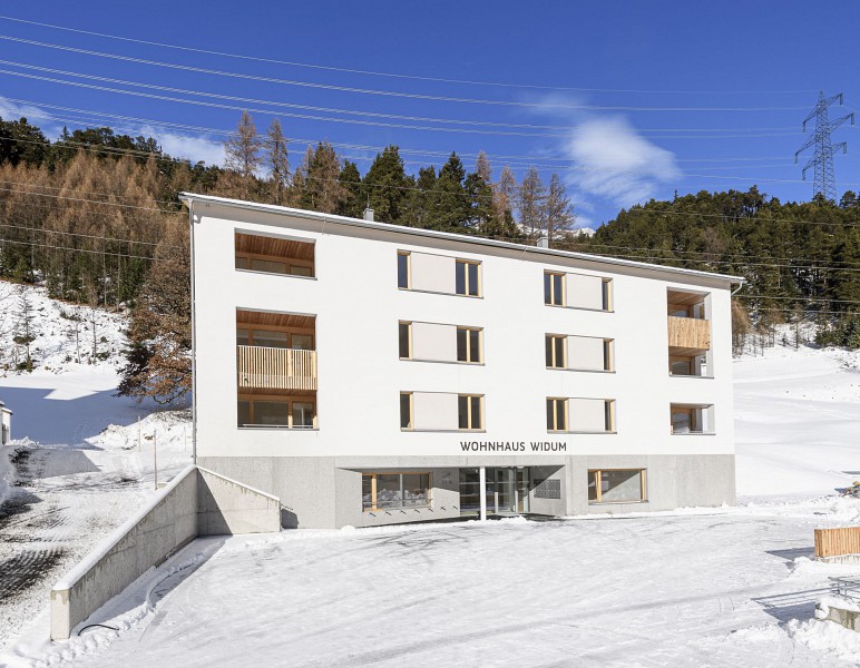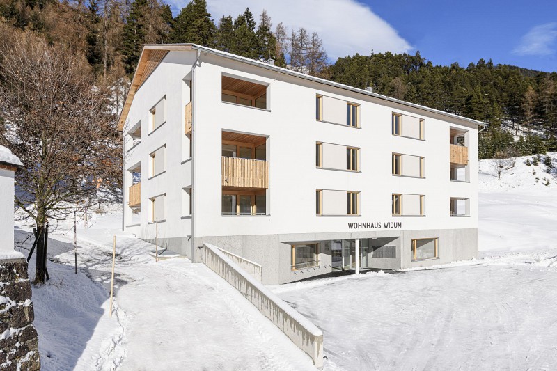 Das bestehende Widum am gegenständlichen Areal wurde abgebrochen und durch eine Wohnanlage ersetzt. Das neue Gebäude besteht aus einem Untergeschoss, in dem die Tiefgarage untergebracht ist, aus einem Erd- und drei Obergeschossen. Im Erdgeschoss wurden neben den Räumlichkeiten für die Pfarre, eine Wohnung sowie Kellerabteile, Technik- und Allgemeinräume untergebracht. In den Obergeschossen wurden 12 Wohnungen situiert.