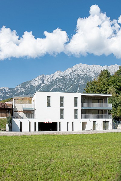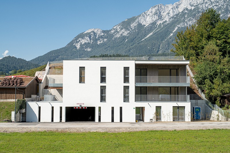 Das Gebäude unterteilt sich in Erdgeschoss und 2 Obergeschosse, auf denen sich 5 Mietwohnungen verteilen. Zudem befinden sich 6 Stellplätze in der Tiefgarage und 1 Besucherparkplatz im Erdgeschoß vor dem Haus. Das Gebäude wird im Passivhausstandard errichtet mit verputzter Fassade.