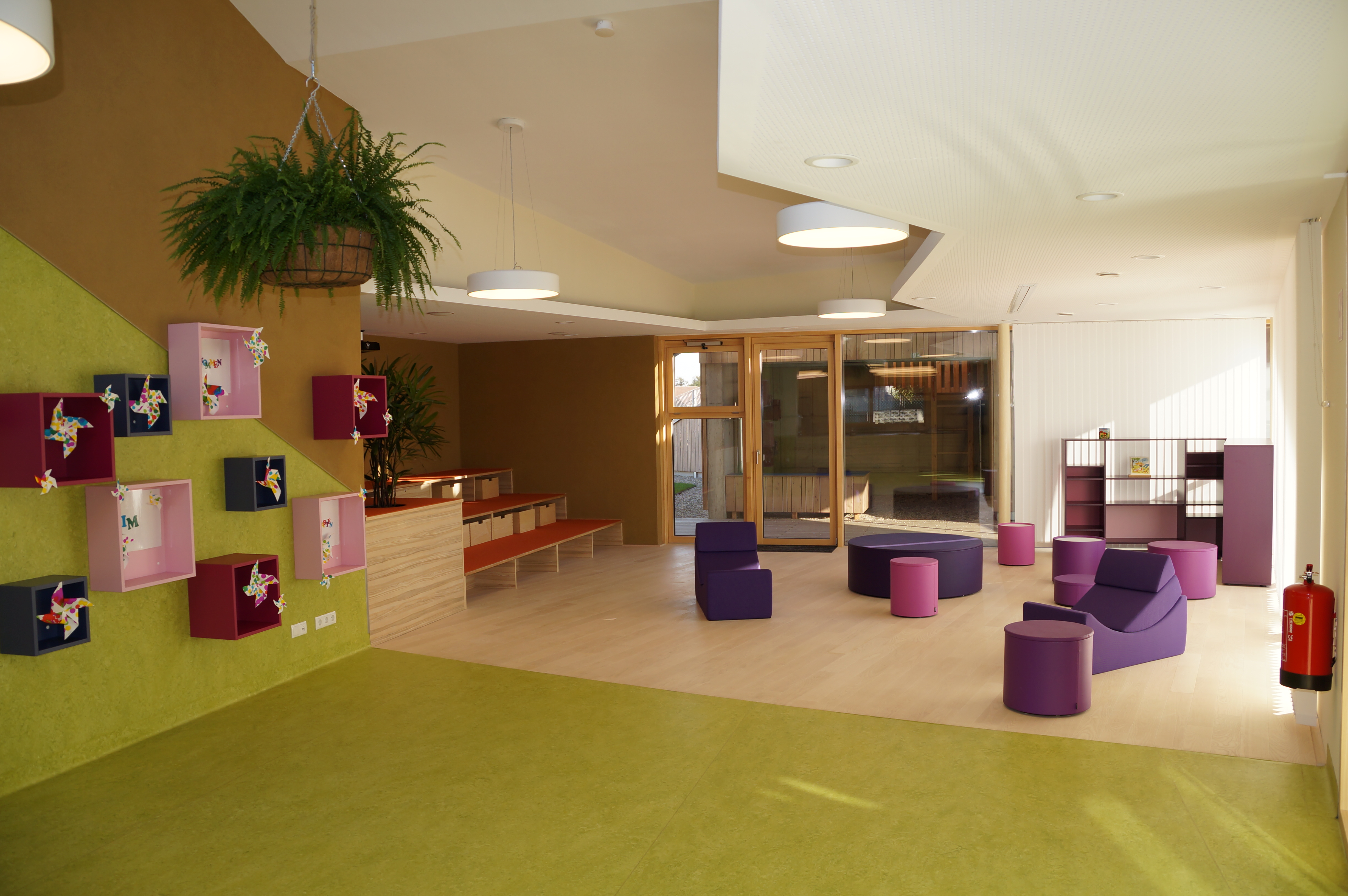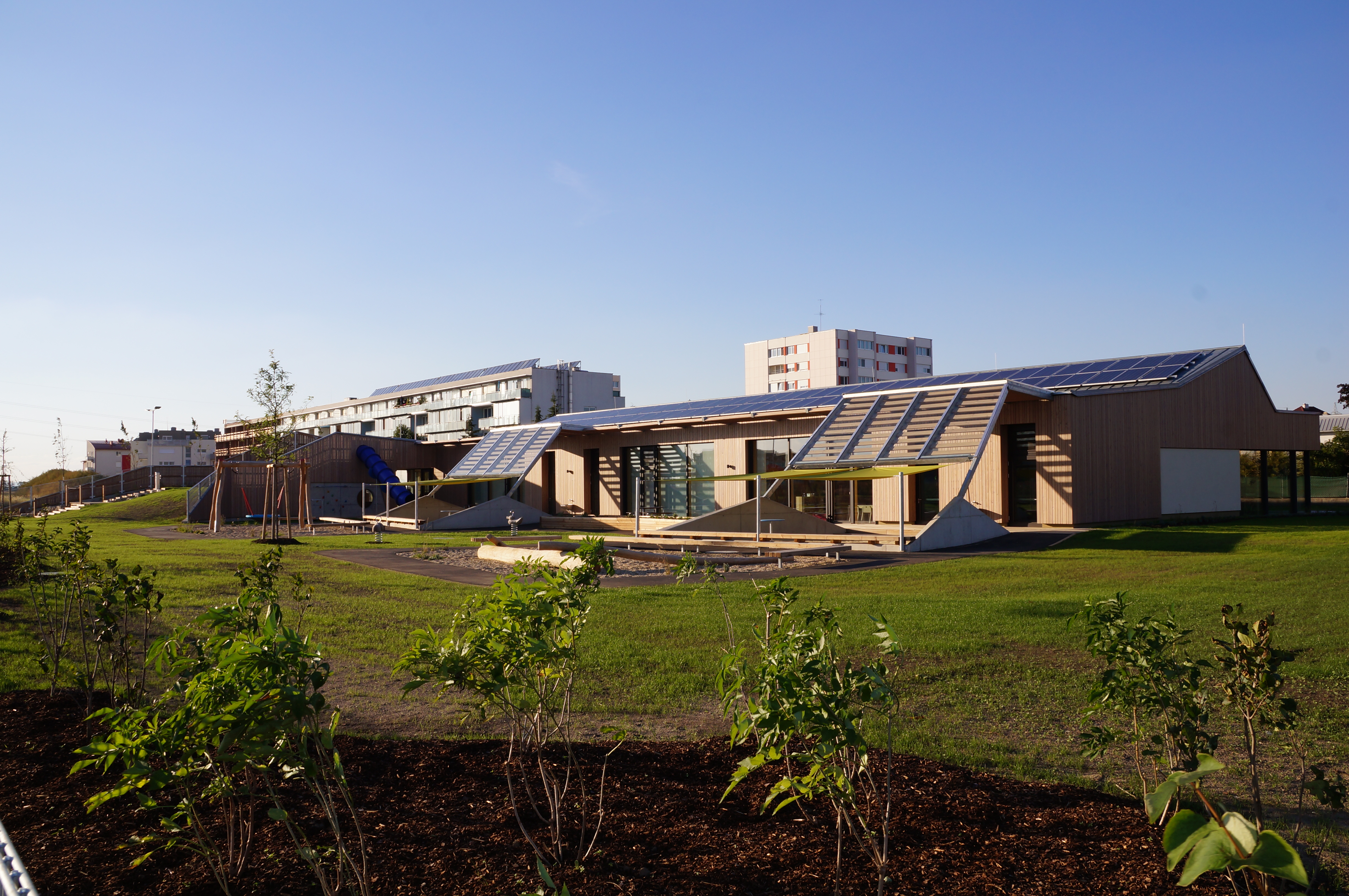 Der dreigruppige Kindergarten (erweiterbar auf 6 Gruppen) in der Dr. Hans Hörler Gasse in Gänserndorf besticht durch seine offene Gestaltung, höchste Energieffizienz und Holzfertigteilbauweise. Das Passivhaus wird mit Fernwärme versorgt. Der Energiemix des lokalen Anbieters besteht im Endausbau zu 80% aus Biomasse (Stroh). In der ersten Ausbaustufe wird eine 20 kWp-Anlage (erweiterbar auf 40 kWp) errichtet. Die PV-Module werden im Steildachbereich in optimiertem Neigungswinkel montiert.