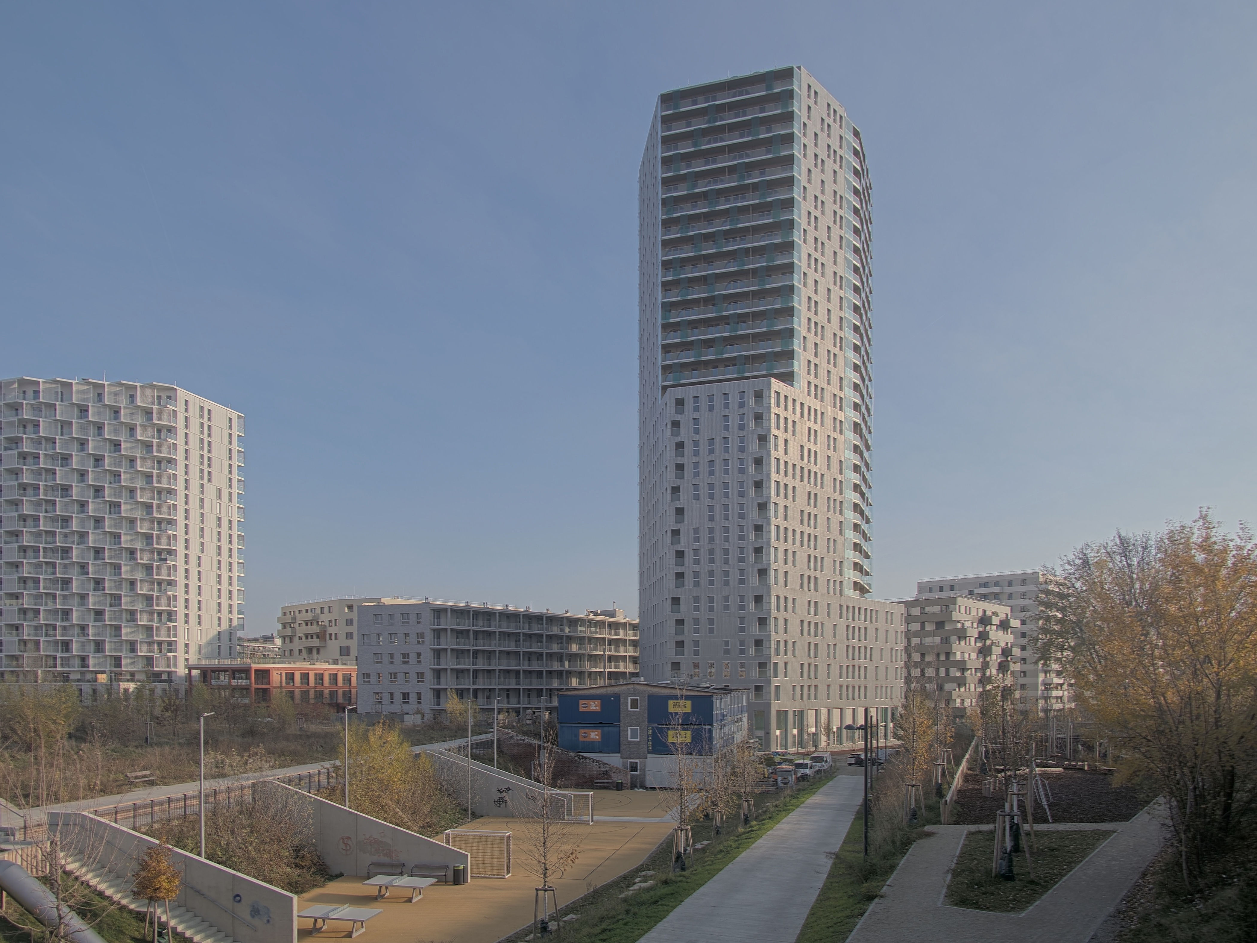 Das Hochhaus „Schneewittchen“ und der „Loft-Flügel“ befinden sich in der Taborstraße 111-113 im zweiten Wiener Bezirk. Das Hochhaus verfügt über ein Kellergeschoß, Erdgeschoß, Zwischengeschoß sowie über 30 Obergeschoße. Im Erdgeschoß und im ersten Obergeschoß befinden sich Gewerbeflächen, Büros und Gemeinschaftsflächen. In den darüberliegenden Geschoßen befinden sich 327 Wohnungen, die alle Zugang zu einem Freiraum in Form eines Balkons gewähren. Die Wohnungstypologien und -größen bieten über alle Geschoße hinweg eine vielfältige Mischung. Soziale Nachhaltigkeit wird durch die Bereitstellung gemeinsamer Infrastruktur sowie Gemeinschaftsflächen mit hoher Aufenthaltsqualität gefördert. Im Gebäude liegt der Fokus auf kurzen Wegen, einfacher Erschließung und leichter Erreichbarkeit von Infrastruktur und Gemeinschaftseinrichtungen.