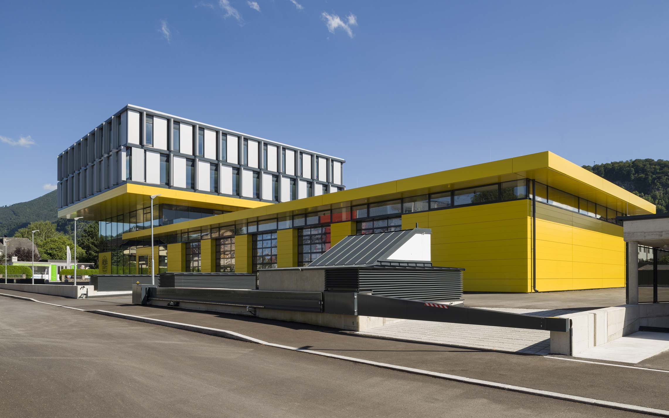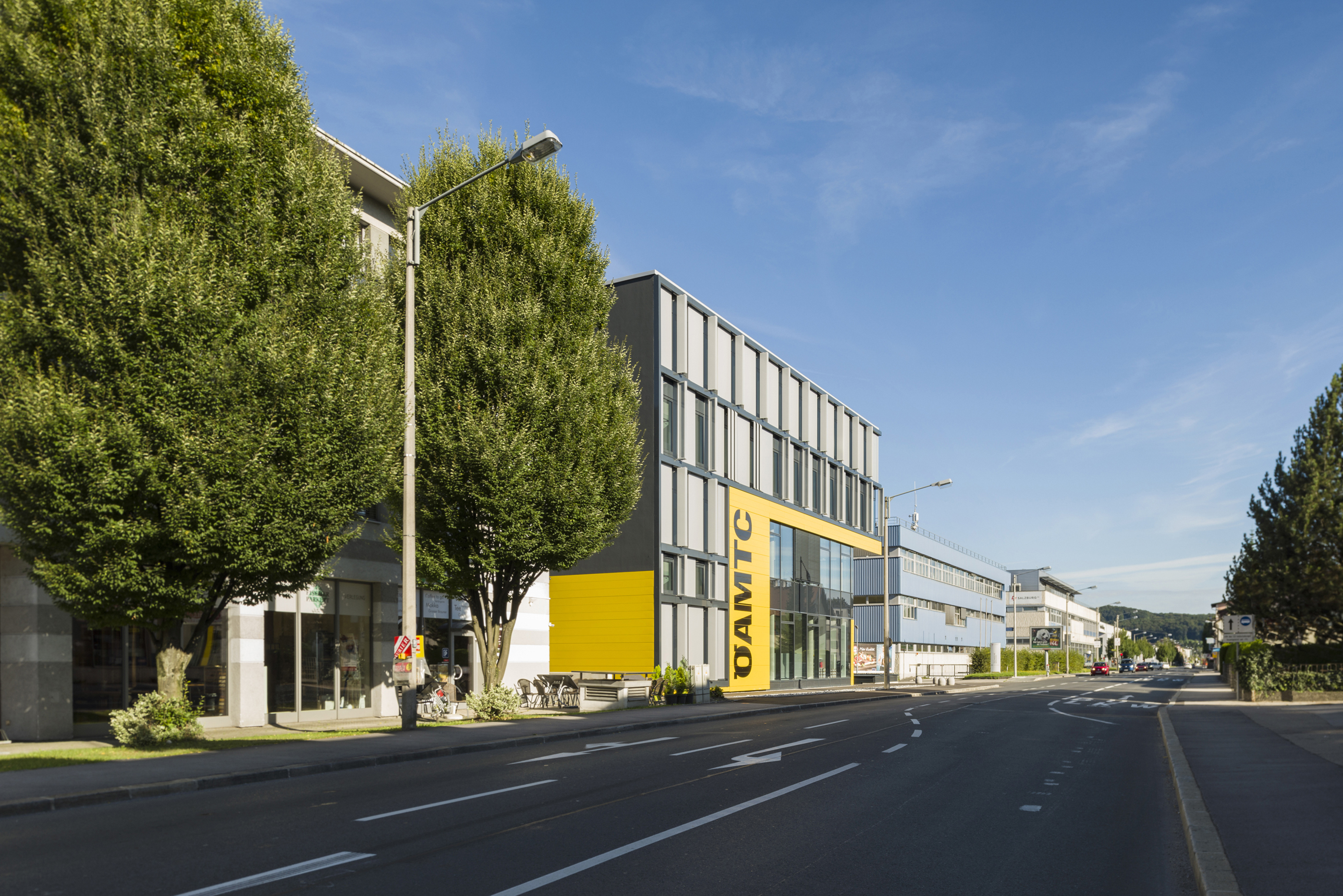 Das neue ÖAMTC Gebäude „Salzburg Nord“ befindet sich im Stadtteil Schallmoos an der stark frequentierten Vogelweiderstraße. Das Quartier ist geprägt durch eine heterogene Bebauungsstruktur und durch gemischte Nutzungen. Wesentlicher Entwurfsgedanke in städtebaulicher Hinsicht war die Stärkung des Blockrandes bei gleichzeitiger Entwicklung des Gebäudes in die Blocktiefe. Über die Bildung der Baukörper werden aber auch die verschiedenen Nutzungseinheiten lesbar: Im Erdgeschoss und 1.Obergeschoss befindet sich der ÖAMTC Stützpunkt Nord mit Prüfhalle, Shop und Büros, darüber im 2. und 3. Obergeschoss wurden flexible Büroflächen zur Fremdvermietung realisiert. Mit der Ausbildung der Raumstruktur und mit der Materialisierung werden Klarheit, Offenheit und Transparenz als Selbstverständnis des ÖAMTC kommuniziert.