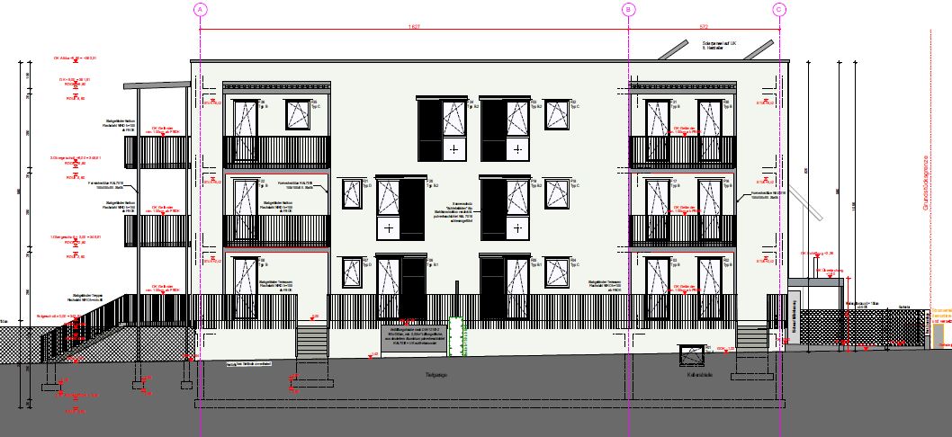 Errichtung eines Mehrfamilienhauses mit einem Untergeschoß(Tiefgarage, Keller) und 3 Obergeschossen