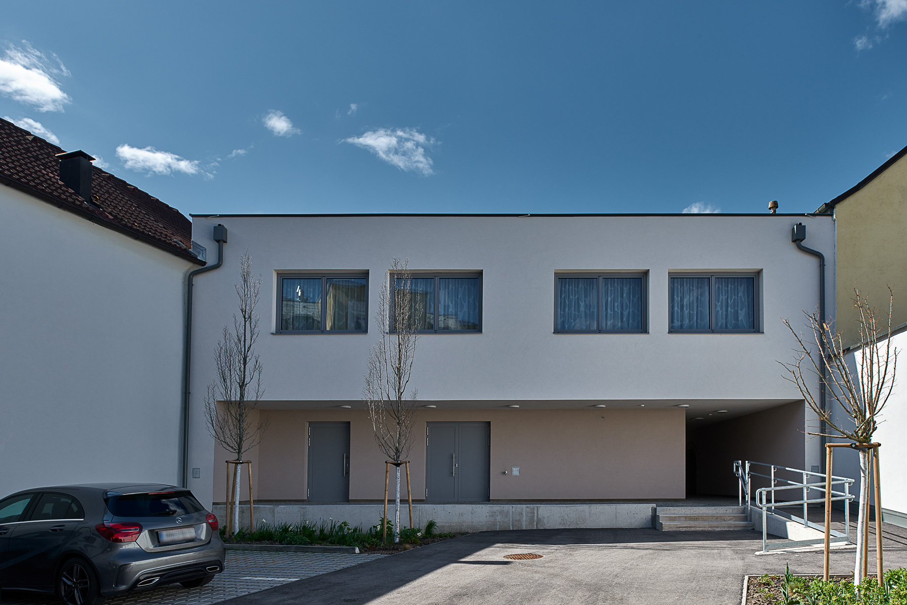 Im EG wurden u.a. Lagerflächen und eine öffentliche Toilettenanlage sowie ein offener Gehweg vom Hauptplatz zum Ärztezentrum geschaffen.