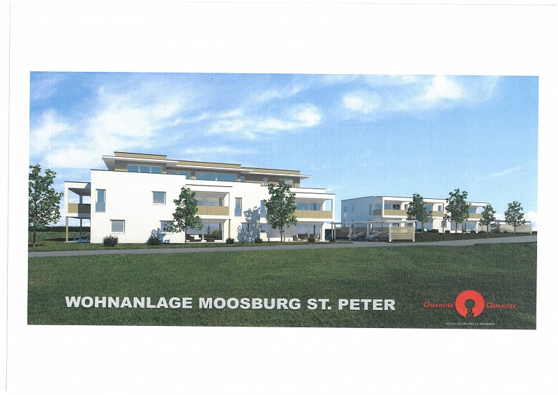 Der Ortsbereich St. Peter ist mit optimaler Infrastruktur und Anschluss an den öffentlichen Verkehr nord-östlich vom Ortszentrum gelegen. Die Standortwahl fiel auf Moosburg auch deshalb, weil die Gemeinde in Bezug auf Energie und Klimaschutz als e5 Gemeinde zertifiziert ist. Die Wohnanlage selbst besteht aus 2 Häusern mit insgesamt 18 Wohneinheiten. Über den bestehenden Gehweg sind das Ortszentrum bzw. öffentliche Infrastruktureinrichtungen direkt fußläufig erschlossen (Nahversorger, Freizeiteinrichtungen, kulturelle Infrastruktur, medizinische Versorgung, öffentliche Verwaltung). Schulen und Kindergärten sind in 1,2 km Entfernung mittels Fahrrad ideal erreichbar. Beide Häuser sind als dreigeschossiges Gebäude mit Flachdach bzw. Terrassendach projektiert.