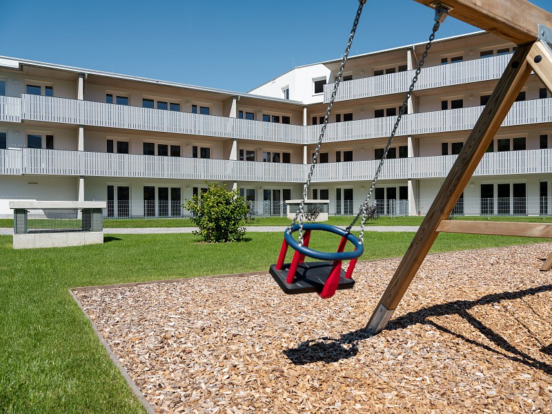 In der Stadt Hall in Tirol, GSt-Nr. 557/10 errichtet die Alpenländische eine Wohnanlage mit insgesamt 23 Mietwohnungen, 29 Tiefgaragenabstellplätzen (UG) und 5 Besucherparkplätzen im Freien(EG). Die Wohnanlage besteht aus einem Baukörper, welcher sich ein einen Nord-, Süd-, und Ostflügel unterteilt. Alle drei Teile werden durch ein zentrales Stiegenhaus und einen Personenaufzug erschlossen. Die Einfahrt in die Tiefgarage erfolgt südwestseitig über die Anna-Dengl-Straße. Jeder Wohnungseinheit sind ein Balkon oder eine Terrasse, ein Autoabstellplatz sowie ein Kellerabteil zugeordnet.