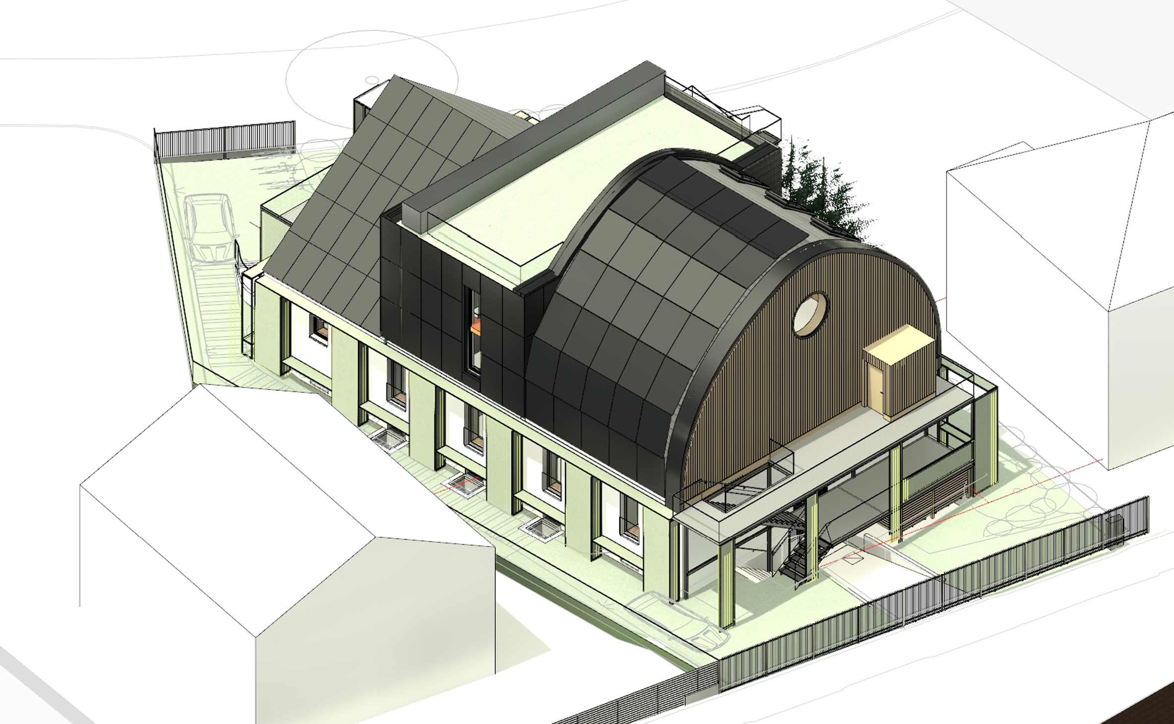In Zusammenarbeit mit dem Architekturbüro Reinberg ZT GmbH unter der Leitung von Georg W. Reinberg sowie Expert*innen aus Bereichen Akustik, Energie- und Grünraumplanung, Haus-, Elektro- und Veranstaltungstechnik entsteht ein akustisch hochwertiges Gebäude, das durch Fassadenbegrünung, der Verwendung von Photovoltaikanlagen und Erdwärme (Wärme- und Kälteversorgung) bautechnisch höchsten Umweltstandards entspricht. Die Planung von Raum-in-Raum Konstruktionen der einzelnen Räume sowie des Konzertsaales garantiert eine akustisch hochwertige und unabhängige Nutzung der einzelnen Räume.