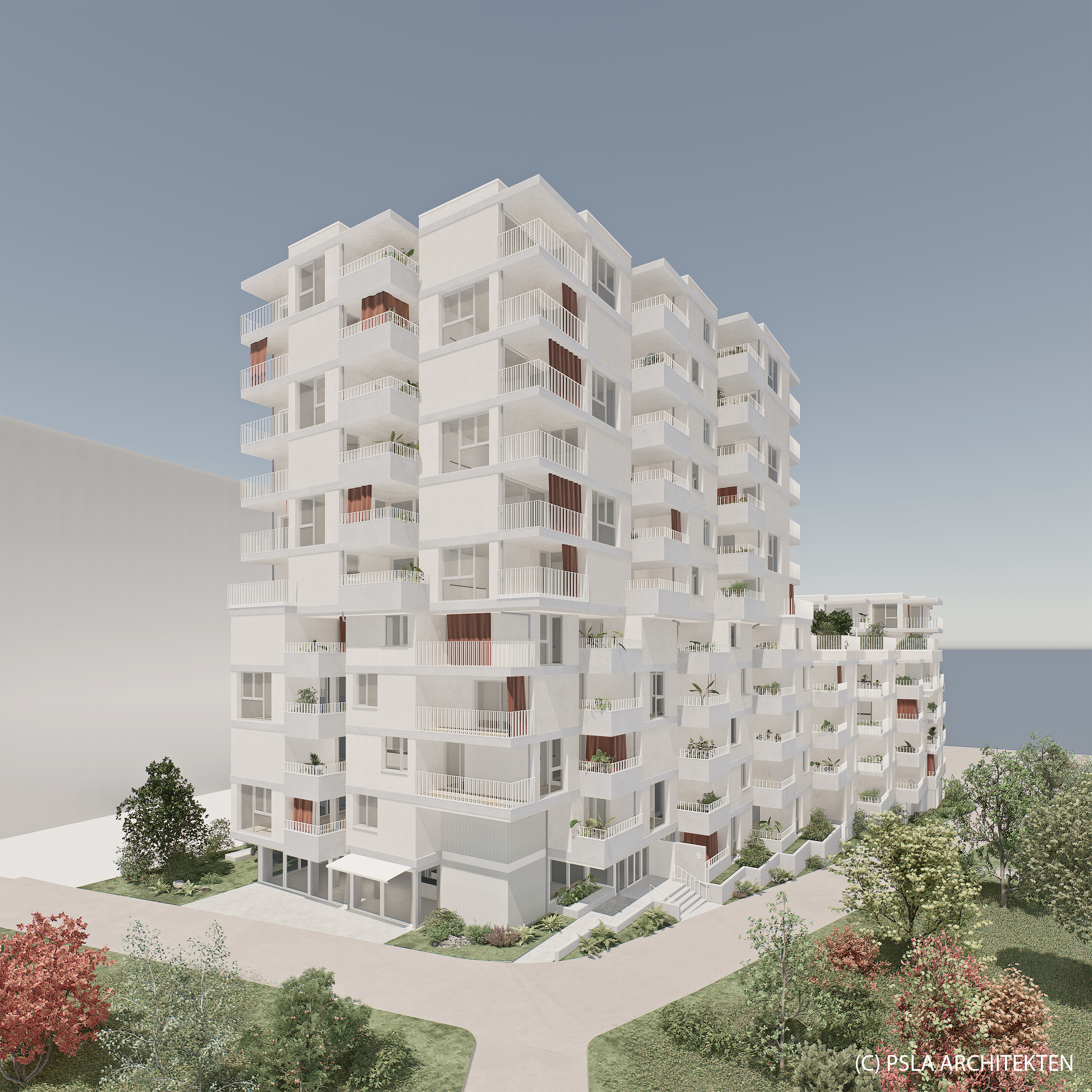 Das Baufeld 14B ist Teil des Stadtentwicklungsgebietes „Village im Dritten“. Gestaltgebend und adressbildend ist die Aggregation des Baukörpers als eine in sich differenziert und durchartikulierte vertikale Wohnlandschaft, die den Wohnraum durchgängig in Bezug zum Freiraum setzt. Alle Wohnungstypen sind vielseitig orientiert. Die Funktionen der einzelnen Räume sind so miteinander verschränkt, dass fließende Funktionsverbände möglich sind. Im Sockel befindet sich eine Sammelgarage, die teilweise exklusiv für Fahrräder gestaltet ist.