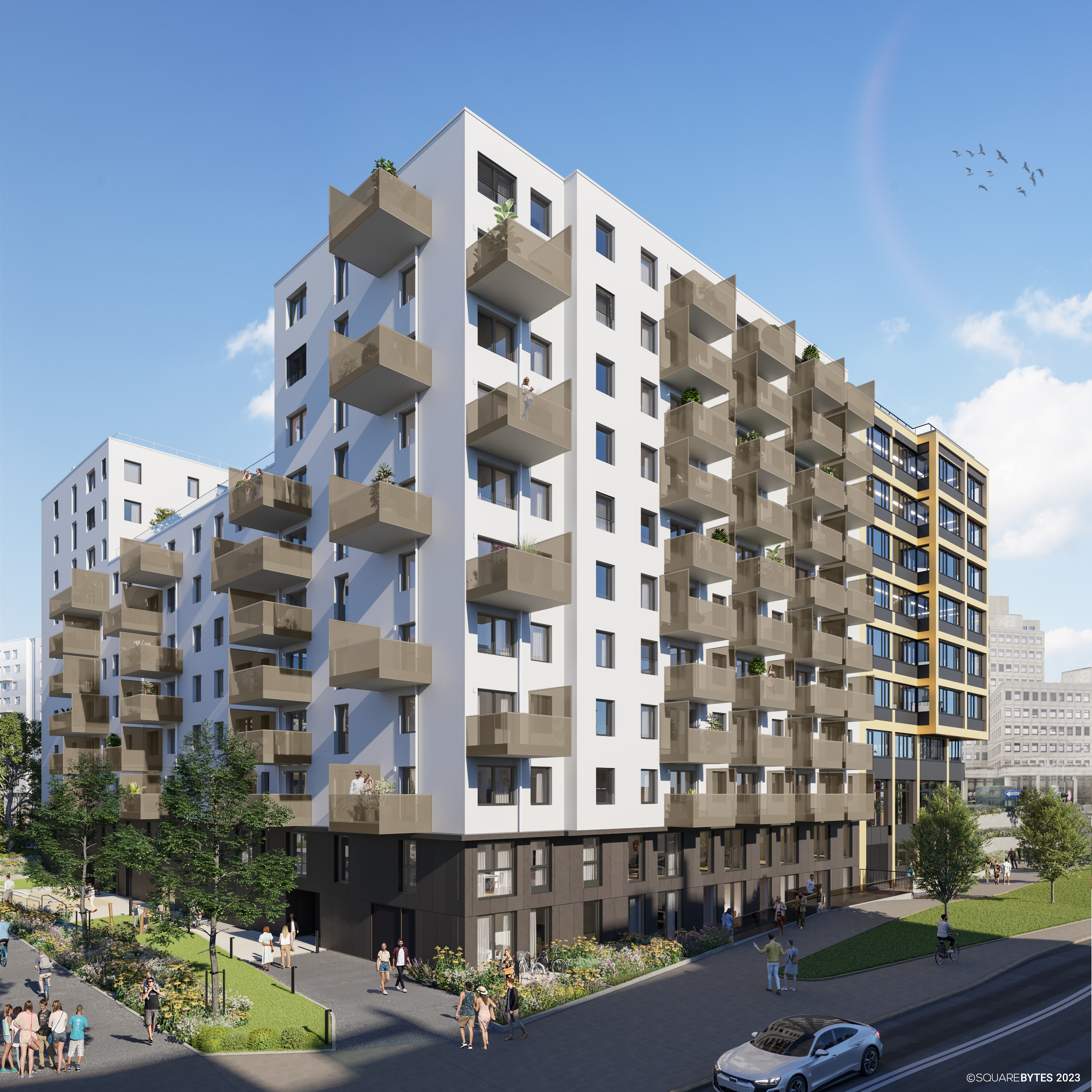 Am Baufeld 09B entsteht eine Wohnhausanlage mit ca. 140 Wohnungen und großzügigen Gemeinschaftsbereichen, wie z.B. Wellnessbereich, Gemeinschaftsraum, etc. Ein zentraler Park sowie ein grüner Innenhof zeigen von hohen Außenraumqualitäten. Die Wohnungen werden mit Balkonen, Terrassen, Loggien oder Mieter:innengärten ausgestattet. Die nutzbare Dachterrasse bietet den Bewohner:innen zusätzlichen Freiraum. Die Bereitstellung der Wärme erfolgt über Wärmepumpe mit Tiefensondenfeld und die Spitzenlast wird über Fernwärme abgedeckt. Andererseits wird die Konditionierung im Sommer über FreeCooling über das Tiefensondenfeld sichergestellt. Weiters verfügt das Gebäude über eine Photovoltaikanlage zur Eigenstromproduktion.