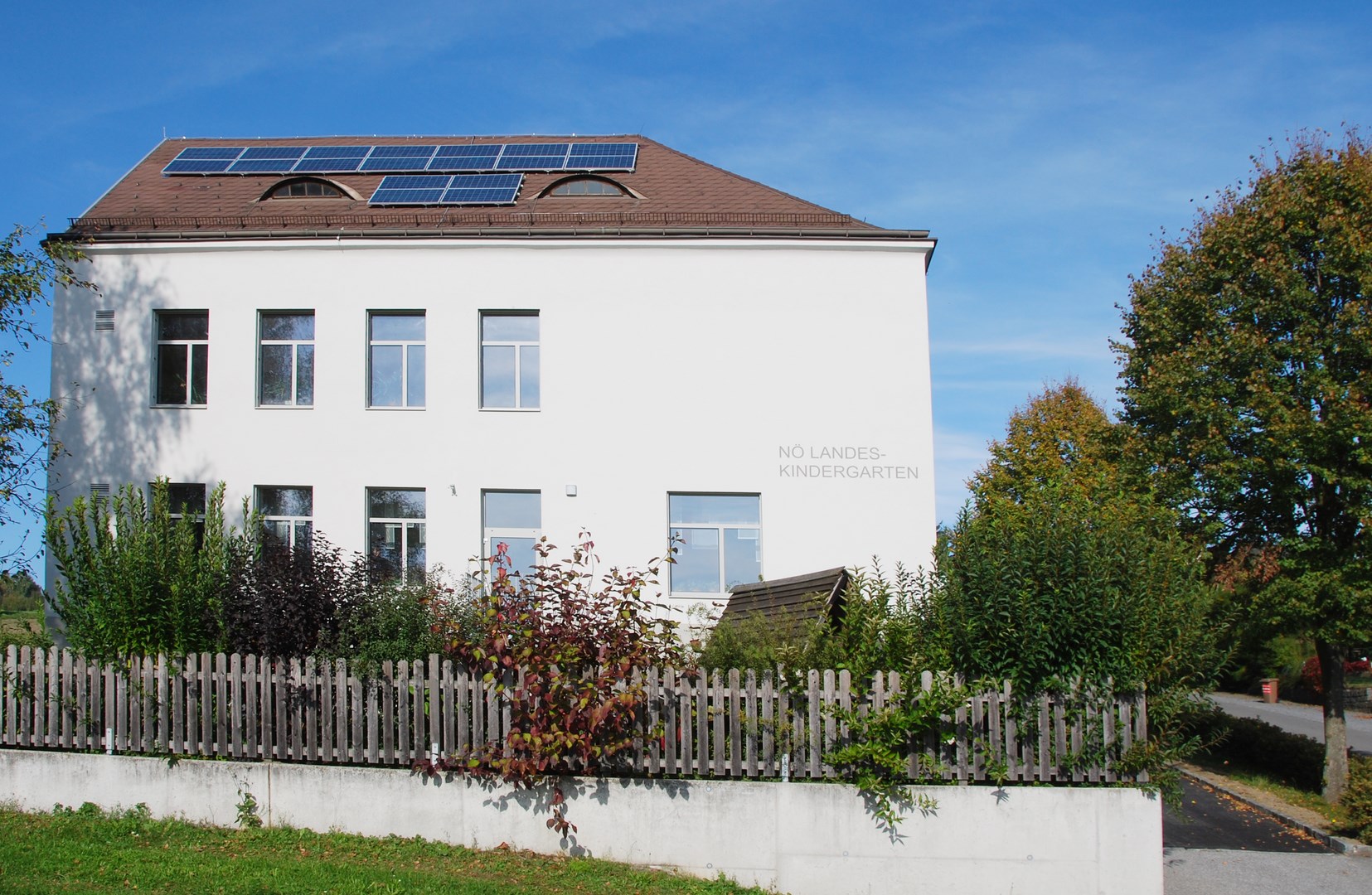 Bei dem vorliegenden Projekt handelt es sich um die thermische Sanierung des Volksschul- und Kindergartengebäudes in Windigsteig im Waldviertel (Baujahr des Bestands: 1914). Die Mustersanierung umfasste die Dämmung der Fassade einschließlich Fenster- und Türentausch, die Dämmung der Innenwände im Bereich des Stiegenaufgangs, die Dämmung der Kellerdecke und des Dachbodens. Das Raumwärmeversorgungssystem (Ölheizung mit 2 Ölkesseln) wurde durch eine Pelletsheizung ersetzt. Dezentrale Komfortlüftungsgeräte mit Wärmerückgewinnung versorgen den Bewegungsraum sowie die Gruppen- und Klassenräume in beiden Geschossen mit Frischluft. Um ausreichenden Sonnenschutz zu gewährleisten, wurden an den Südost- und Südwest-orientierten Fenstern elektrisch betriebene außenliegende Raffstores angebracht. Diese können auch Licht lenkende Funktionen übernehmen und sorgen damit für optimale Lichtverhältnisse in den Klassenräumen. Eine Photovoltaikanlage mit einer Gesamtleistung von 15 kWp liefert rund 13.600 kWh/a Strom.