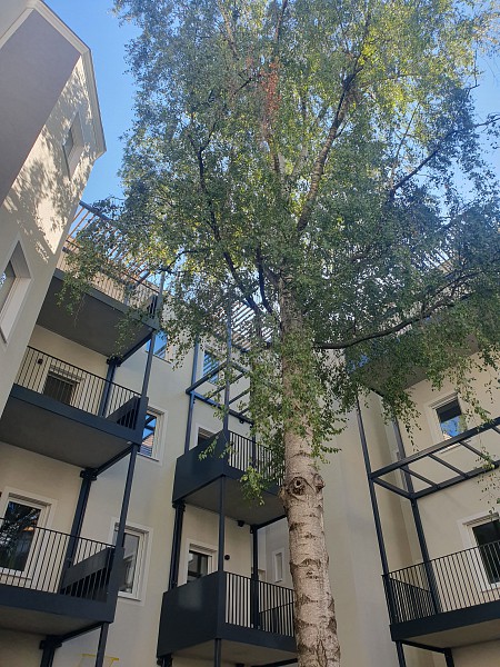 Die aus der Gründerzeit stammende Wohnhausanlage der ÖBB besteht aus 6 aneinander gebauten Einzelhäusern, welche um einen Innenhof gruppiert sind. Alle Wohnungsgrundrisse wurden komplett neu organisiert, teilweise wurden Wohnungen zusammengelegt. Die Fußbodenaufbauten wurden komplett erneuert um eine Fußbodenheizung einbauen zu können. Die Wärmebereitstellung aller neuen Wohnungen erfolgt zentral über hocheffiziente Luft-Wärmepumpen. Die Bereitung von Warmwasser erfolgt dezentral in den Wohnungen jeweils über einen elektrisch betriebenen Warmwasserspeicher. Das ganze Gebäude wurde bauphysikalisch mittels eines WDVS (18cm Dämmstärke) und neuen Fenstern ertüchtigt. Als zusätzliche Aufwertung wurden im Hof 7 Balkontürme und 2 Aufzugszubauten errichtet.