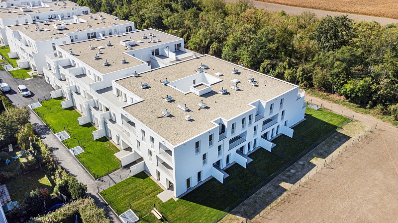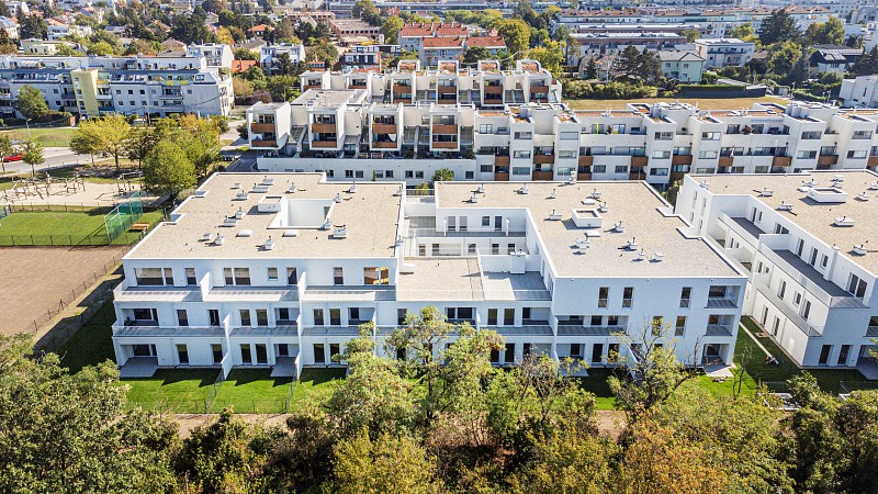 Die Wohnhausanlage besteht aus einem kompakten Baukörper mit zwei Atrien mit insgesamt 59 allseitig ausgerichteten Wohnungen. Die Erschließung erfolgt über zwei Stiegenhäuser mit je einem Lift, welche alle Geschosse umfassen. Im Kellergeschoss ist eine Tiefgarage situiert. Weiters befinden sich Technik- und Einlagerungsräume sowie Fahrradabstellplätze (im Einlagerungsraum) im Kellergeschoss. Kinderwagenabstellraum sowie der Müllraum befinden sich im Erdgeschoss. Die Wohnungen befinden sich in den Geschossen Erdgeschoss, 1. Obergeschoss und Dachgeschoss (teilweise mit Eigengarten, Terrassen und Loggien). Das Projekt wird im klimaaktiv Qualitätsstandard Bronze ausgeführt. Die Raumheizung und Warmwasserversorgung wird durch hocheffiziente Fernwärmeversorgung betrieben.