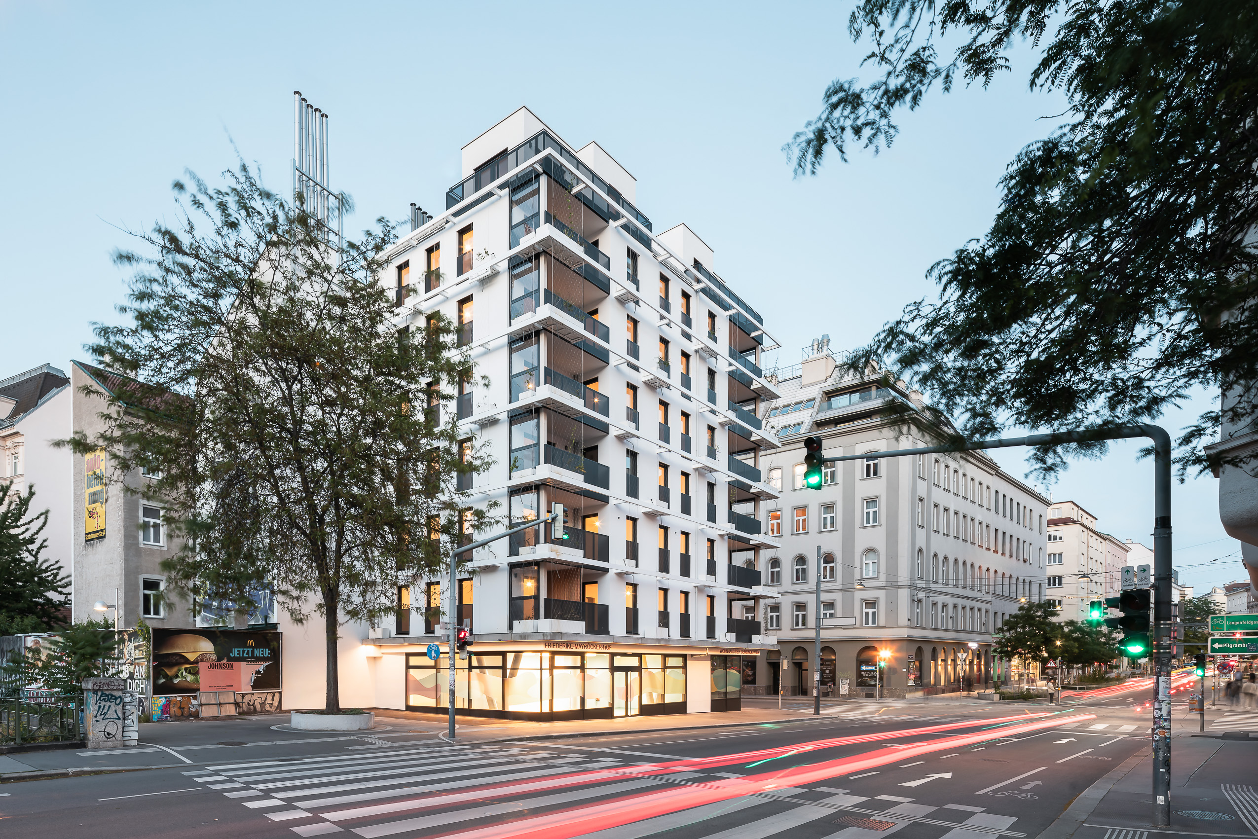 An der Ecke Reinprechtsdorfer Straße / Schönbrunner Straße entsteht ein neuer Wohnbau für Wiener Wohnen. Das schmale Grundstück ist Nord-Süd orientiert und schließt im Osten an die bestehende Bebauung an. Auf 8 oberirdischen Geschossen entstehen 15 neue Gemeindewohnungen.