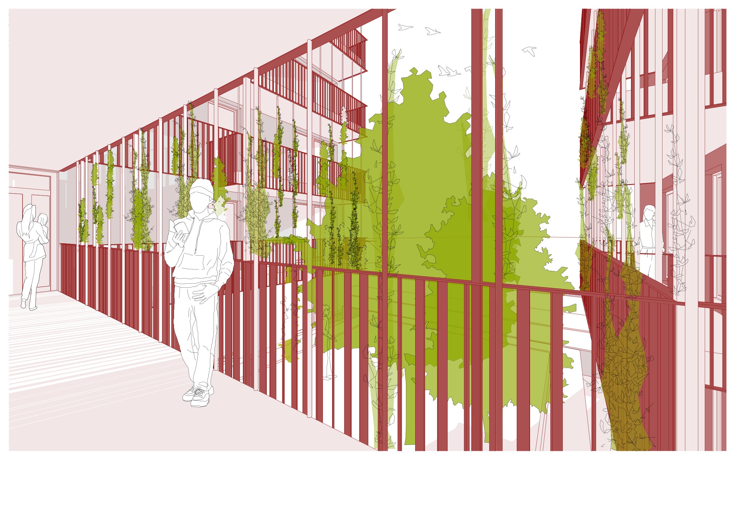 Auf dem Grundstück an der Eipeldauerstraße entsteht eine moderne Wohnanlage, die aus mehreren Baukörpern besteht und barrierefrei zugängliche Wohneinheiten mit gemeinschaftlich nutzbaren Räumen kombiniert. Das Gebäude wird über ein sicheres Stiegenhaus erschlossen, das sowohl vom öffentlichen Straßenraum als auch vom neu geschaffenen Innenhof erreichbar ist. Neben Wohnräumen umfasst das Projekt Allgemeinräume, Fahrrad- und Einlagerungsräume, Müllräume, ein Hausbetreuungszentrum sowie eine Gewerbeeinheit. Zur nachhaltigen Energieversorgung werden Brunnen für Heizung, Kühlung und Warmwasserbereitung eingesetzt, unterstützt durch Wärmepumpen und eine PV-Anlage.