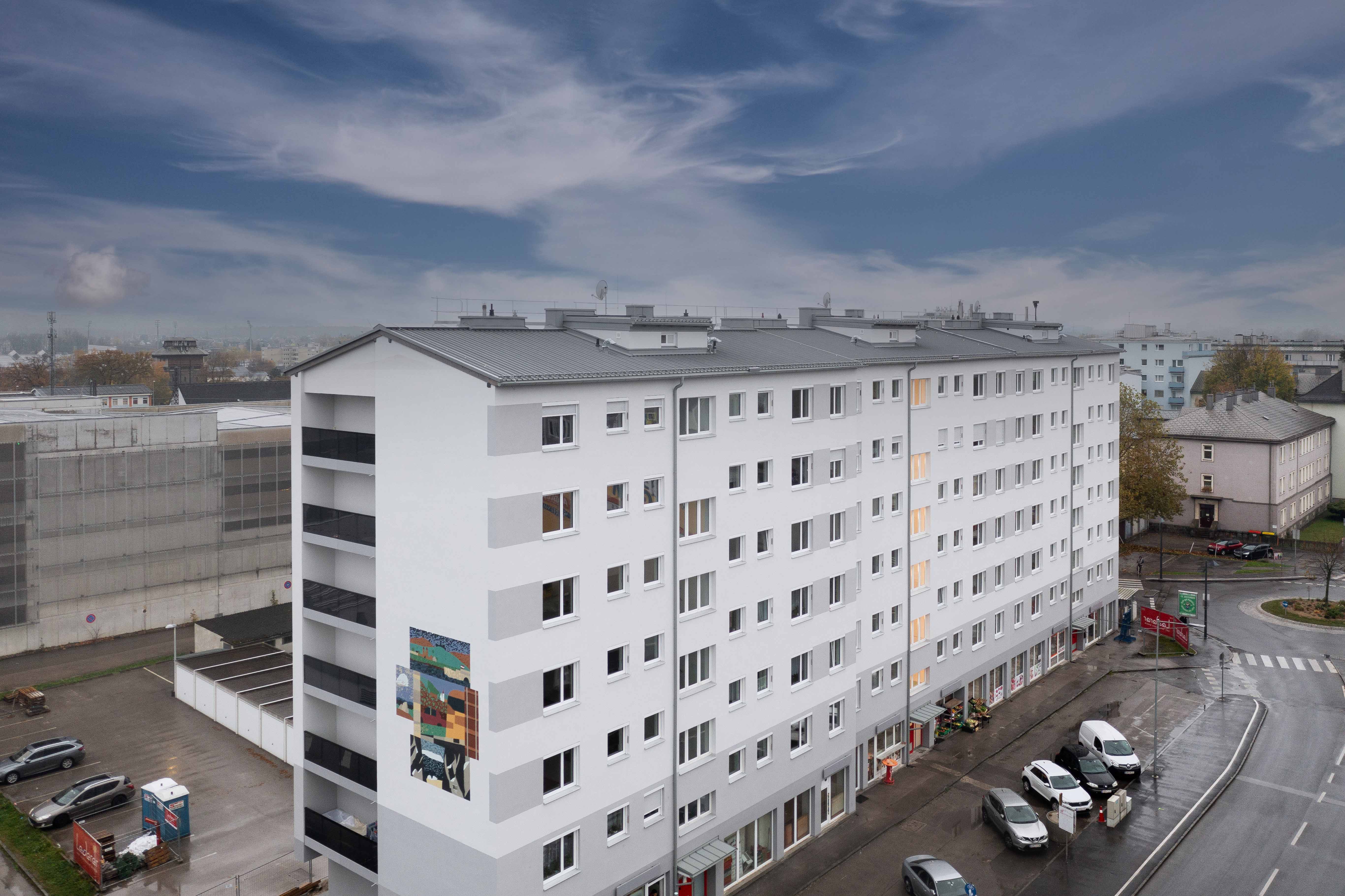 Das Objekt wurde um 1964 als „Wohnhauswiederaufbau“ in unmittelbarer Nähe zum Bahnhof in guter Stadtkernlage errichtet. 26 leerstehende Wohneinheiten wurden nun anhand der standardisierten Bau- und Ausstattungsbeschreibung des ÖBB-Wohnprogramms saniert. Ausbau und haustechnische Anlagen wurden dabei komplett erneuert, die Energieversorgung erfolgt nunmehr über einen Fernwärmeanschluss anstelle einer Gaszentralheizung (Klimaschutz, CO2-Reduktion, „Raus aus Gas“). Fassade und oberste Geschoßdecke wurden thermisch saniert, die Dachhaut erneuert. 33 neu errichtete Balkone bieten den Bewohner:innen Freiraum und zusätzlichen Komfort.