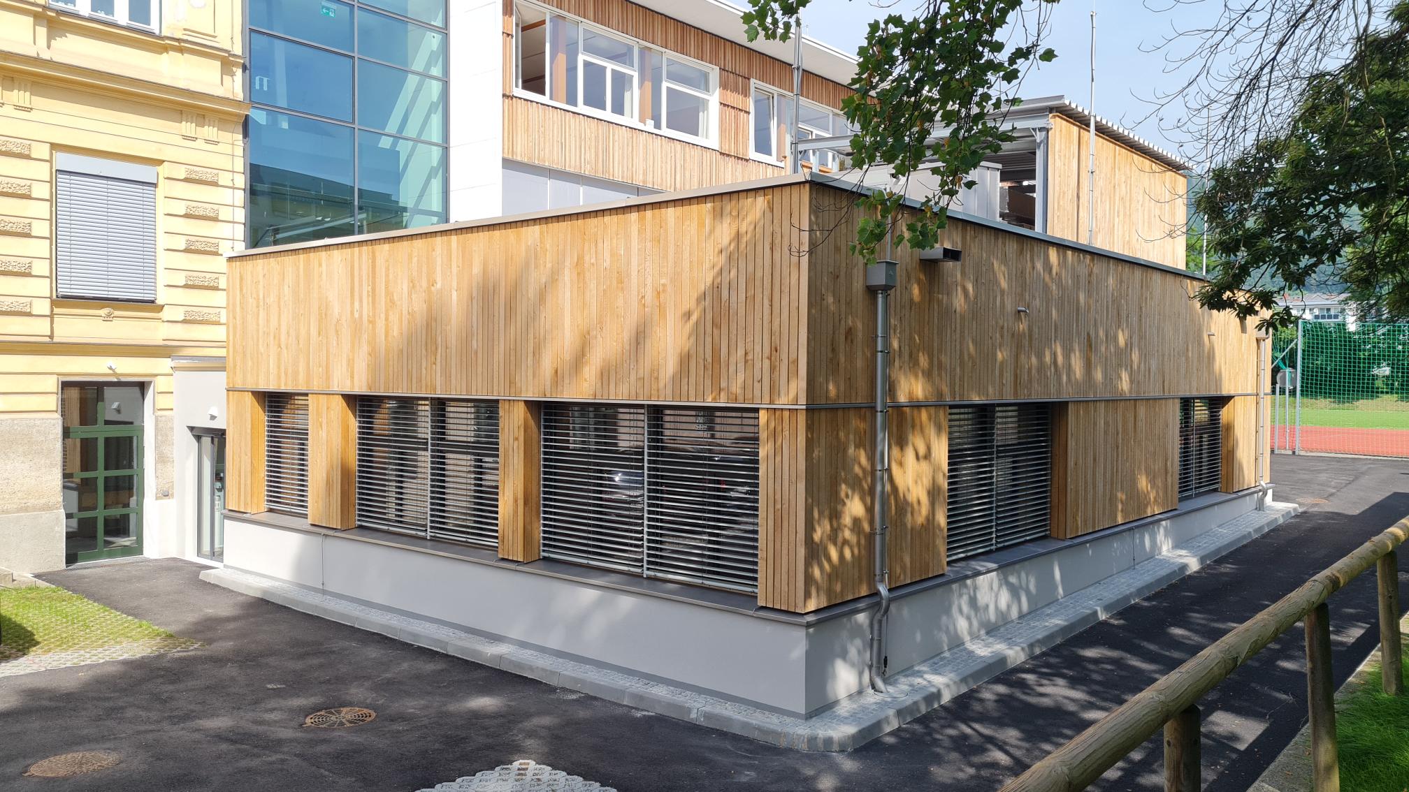 Bei der HBLA Bruck an der Mur ist ein eingeschoßiger Zubau erfolgt; es entstanden zwei Prüfungsräume mit dem Schwerpunkt EDV.
