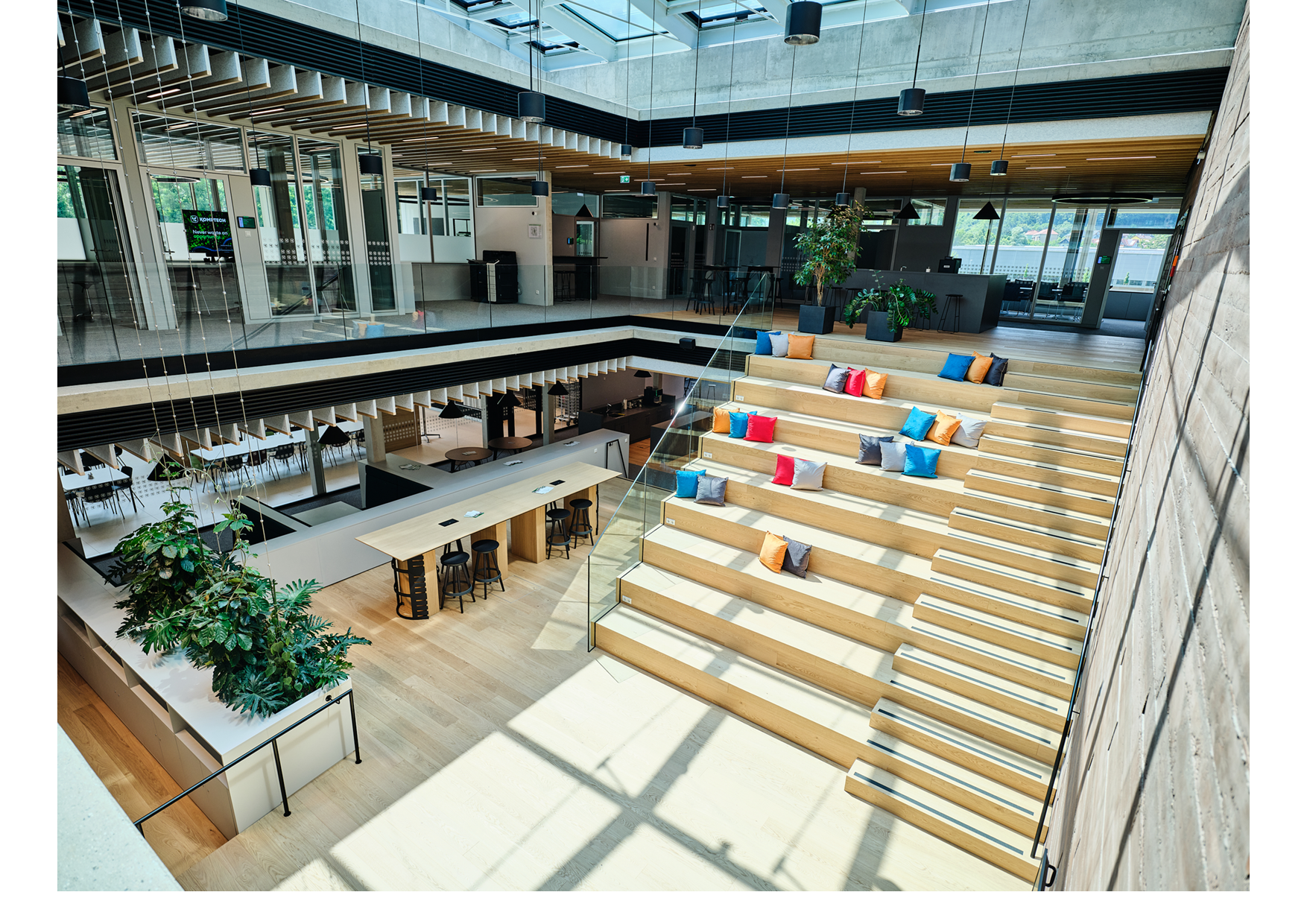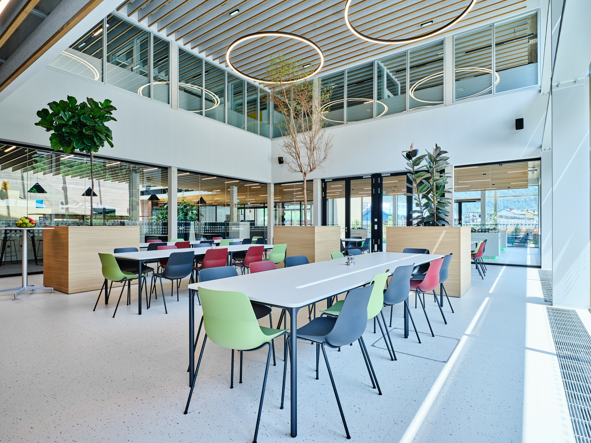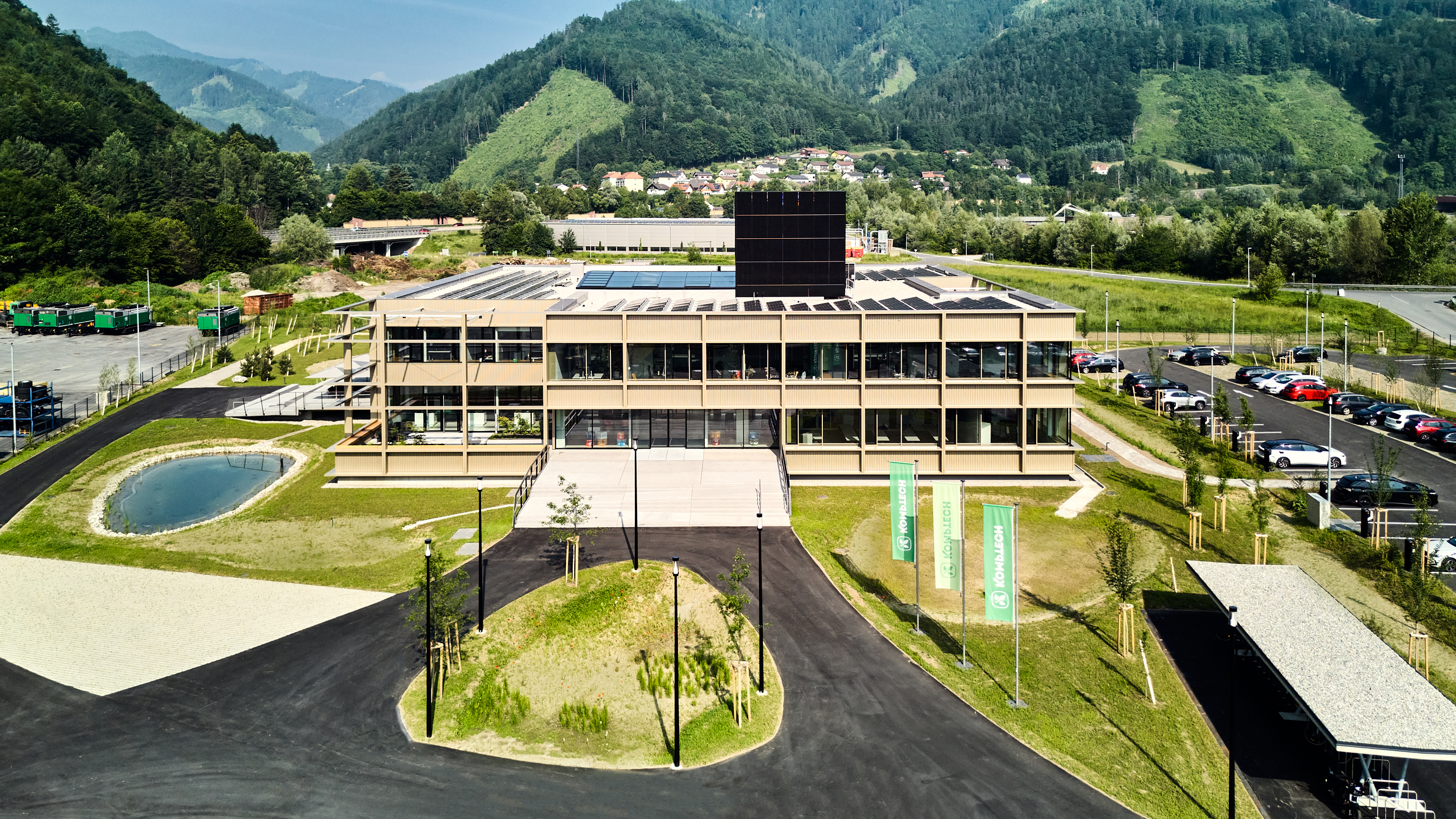 Am Standort Frohnleiten (Steiermark) wurde ein neues Bürogebäude mit einer Bruttogeschossfläche von ca. 3.500 m² errichtet. Der Neubau umfasst zwei oberirdische Geschosse sowie ein Untergeschoss, in dem die technischen Anlagen für Heizung, Kühlung und Wasseranschluss installiert sind. Auf dem Dach befindet sich ein Technikraum mit den Lüftungsanlagen, Luft-/Wasser-Wärmepumpen sowie Photovoltaikanlagen zur Eigenstromerzeugung.